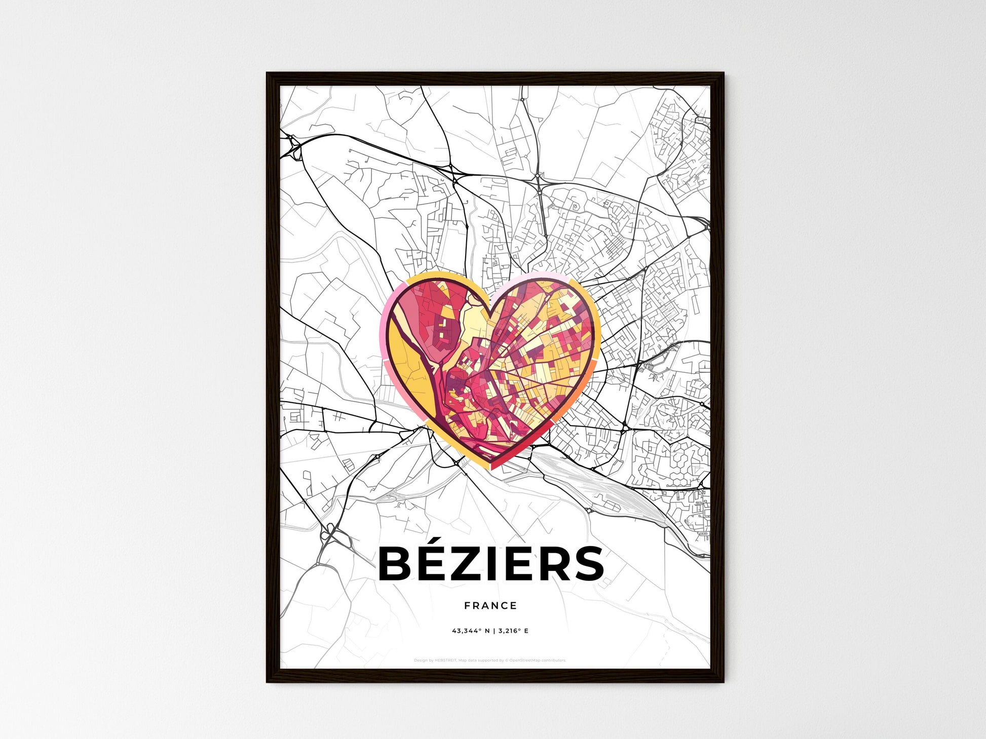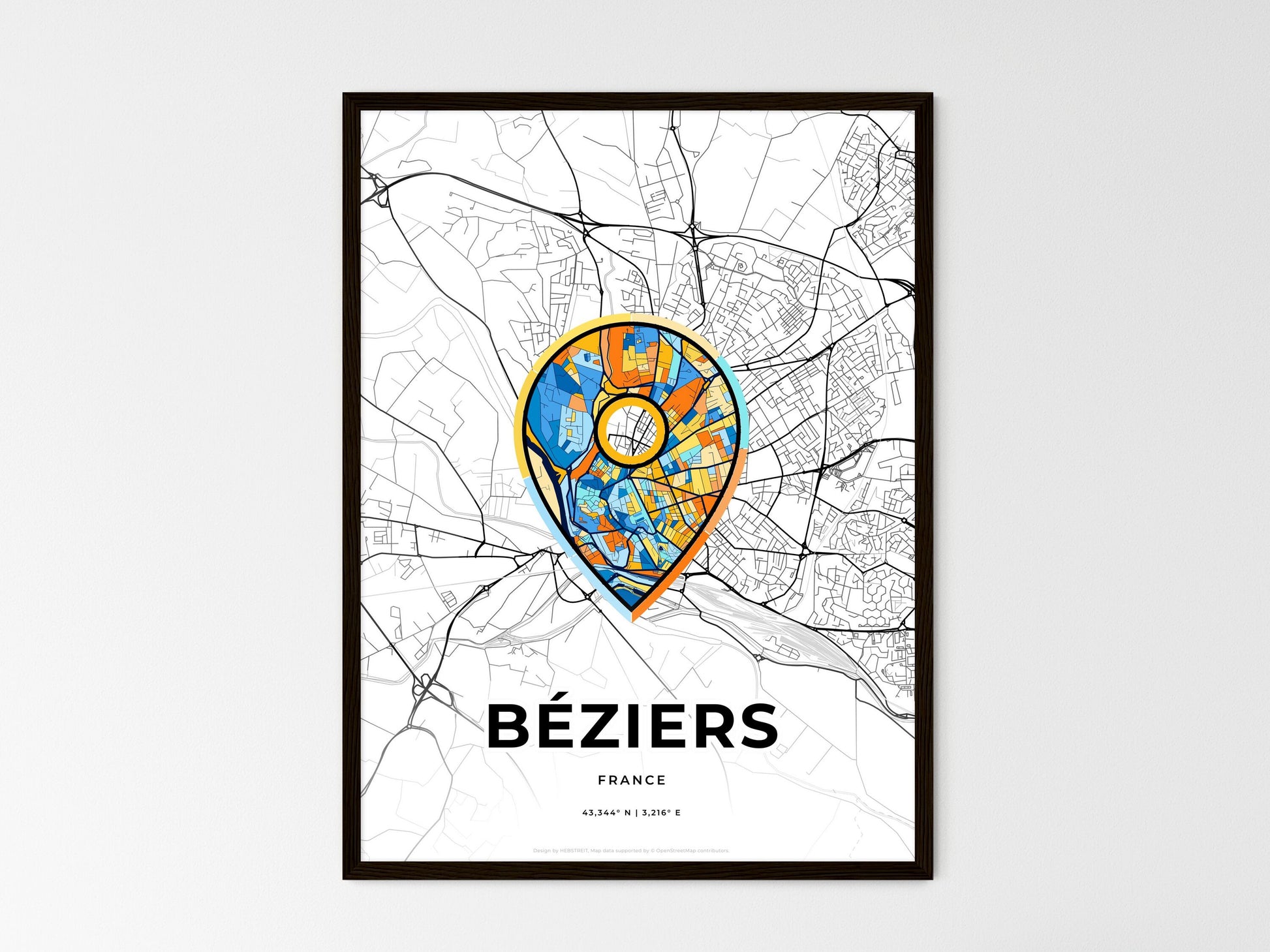Awaken your wanderlust with this mesmerizing print of Béziers, France. This abstract art map captures the vibrant essence of the city, highlighting iconic landmarks with a splash of vibrant color. Nestled in the heart of the Languedoc region, Béziers boasts a rich tapestry of history, from its ancient Roman amphitheater to its medieval fortifications. Stroll along the picturesque Canal du Midi, soak in the sun-drenched beaches of the Mediterranean, and immerse yourself in the lively markets and festivals that make Béziers a thriving cultural hub. This map is not just a home decor piece