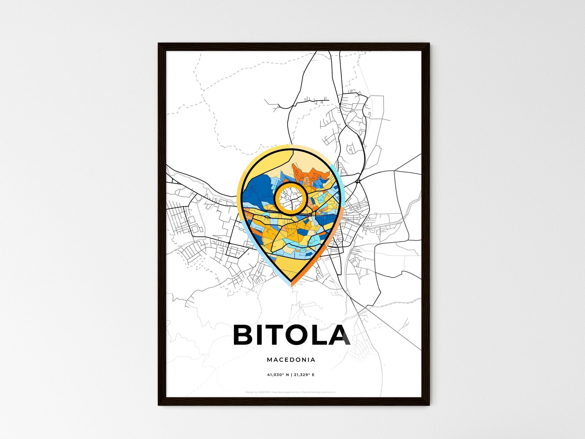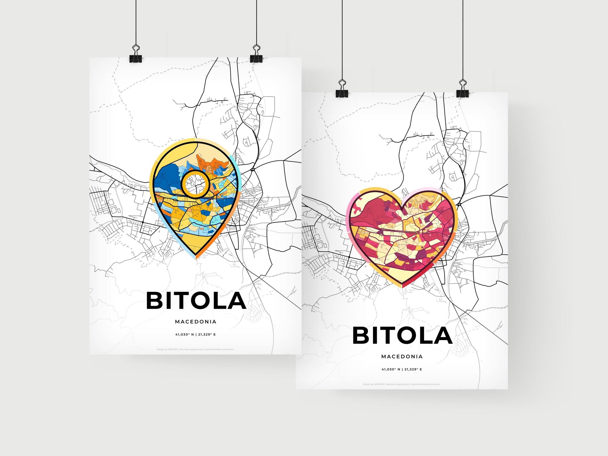 Our map of Bitola Macedonia shows minimalist designed roads, railroads and waterways combined with colorful urban areas within one icon.
