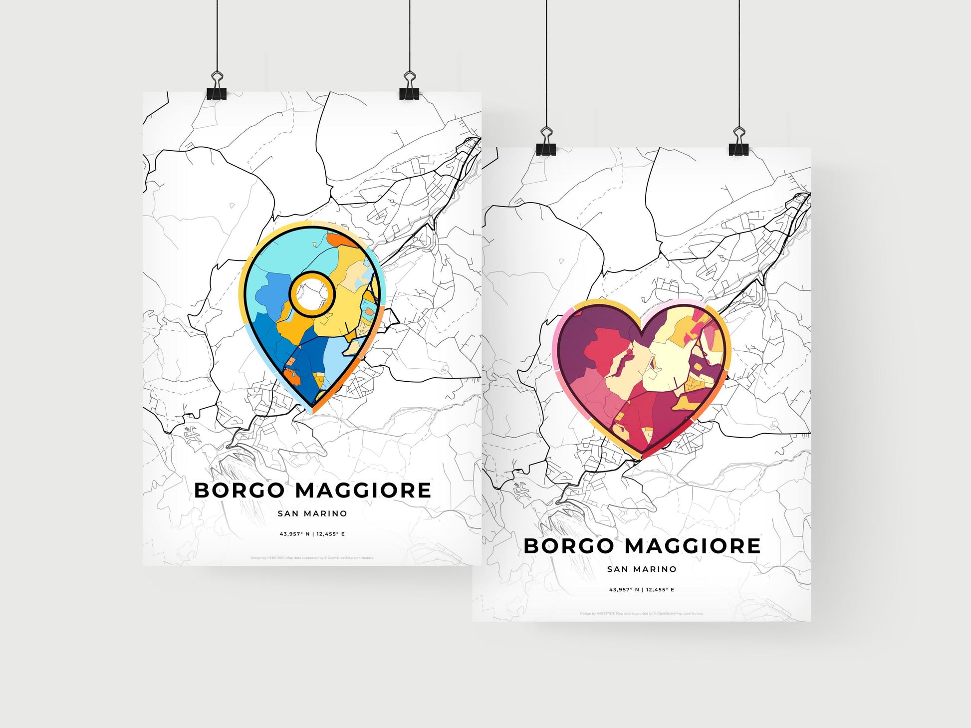 Borgo Maggiore San Marino, minimal art map with a colorful icon