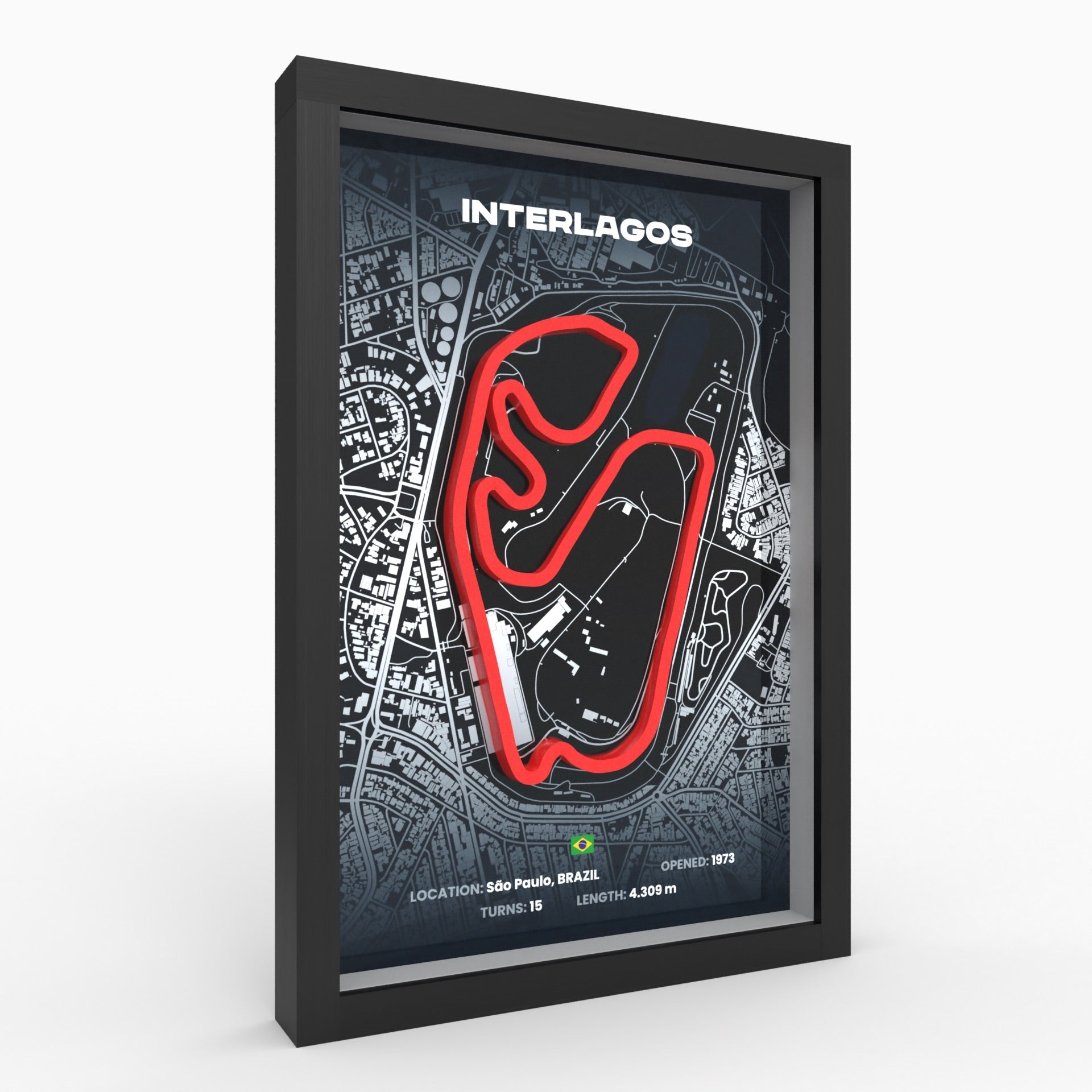 Dieses 3D-Poster verbindet moderne Technologie mit traditioneller Handwerkskunst und bietet eine beeindruckende Darstellung des Autódromo José Carlos Pace, die jedes Zuhause oder Büro bereichert.