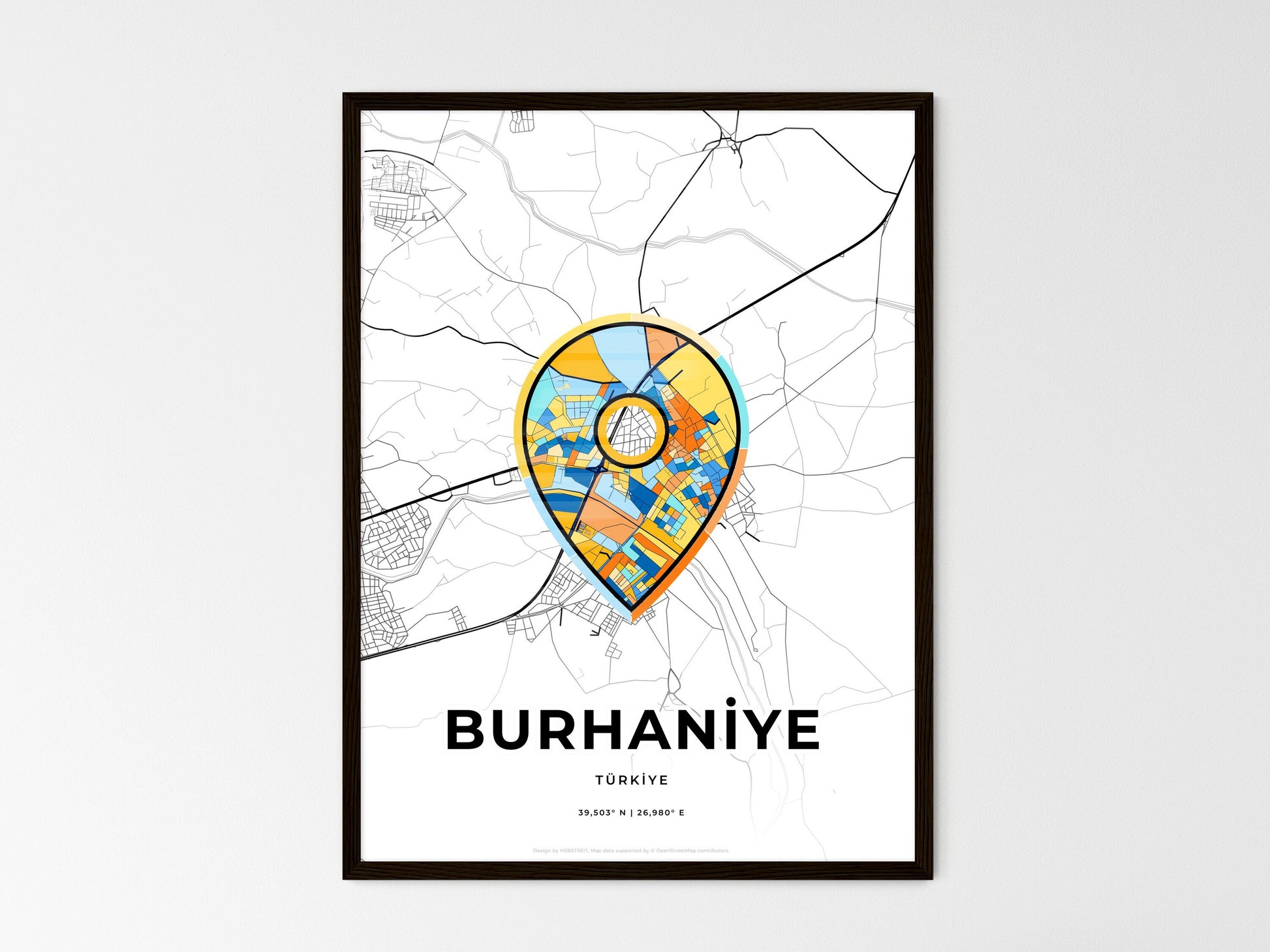 Burhaniye Turkey, minimal art map with a colorful icon