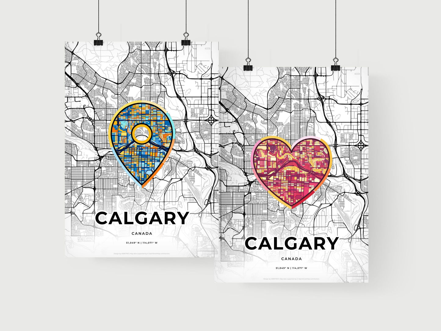 Our map of Calgary Canada shows minimalist designed roads, railroads and waterways combined with colorful urban areas within one icon.