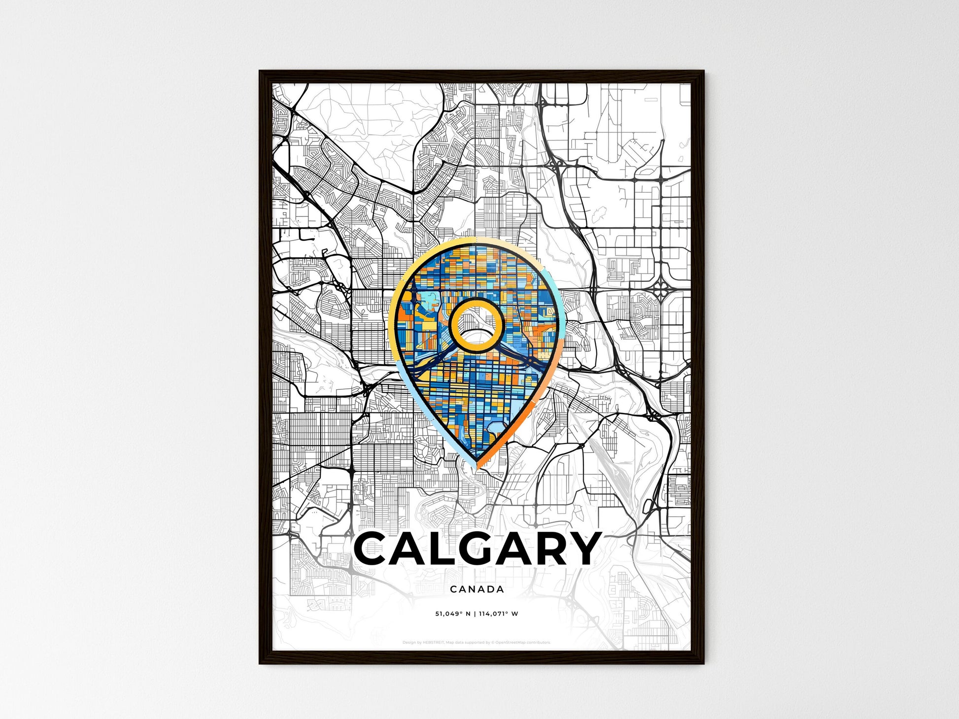 Calgary Canada, minimal art map with a colorful icon