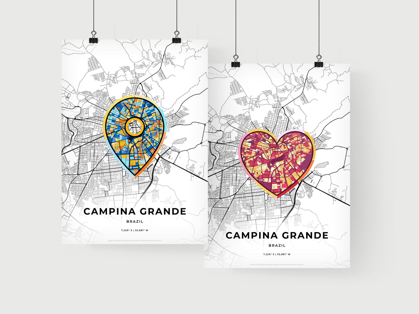 Immerse yourself in the vibrant history and culture of Campina Grande, Brazil, with this captivating print. Nestled in the heart of the picturesque Paraíba region, Campina Grande boasts a rich tapestry of traditions, from its renowned São João festival to its thriving textile industry. As you gaze upon this abstract illustration of the city's map, let the colorful icon spark your imagination and draw you into the vibrant spirit that defines this captivating destination. Whether you're a local seeking a memento or a traveler longing to relive memories, this print will serve as a cherished reminder of the unforgettable charm of Campina Grande.