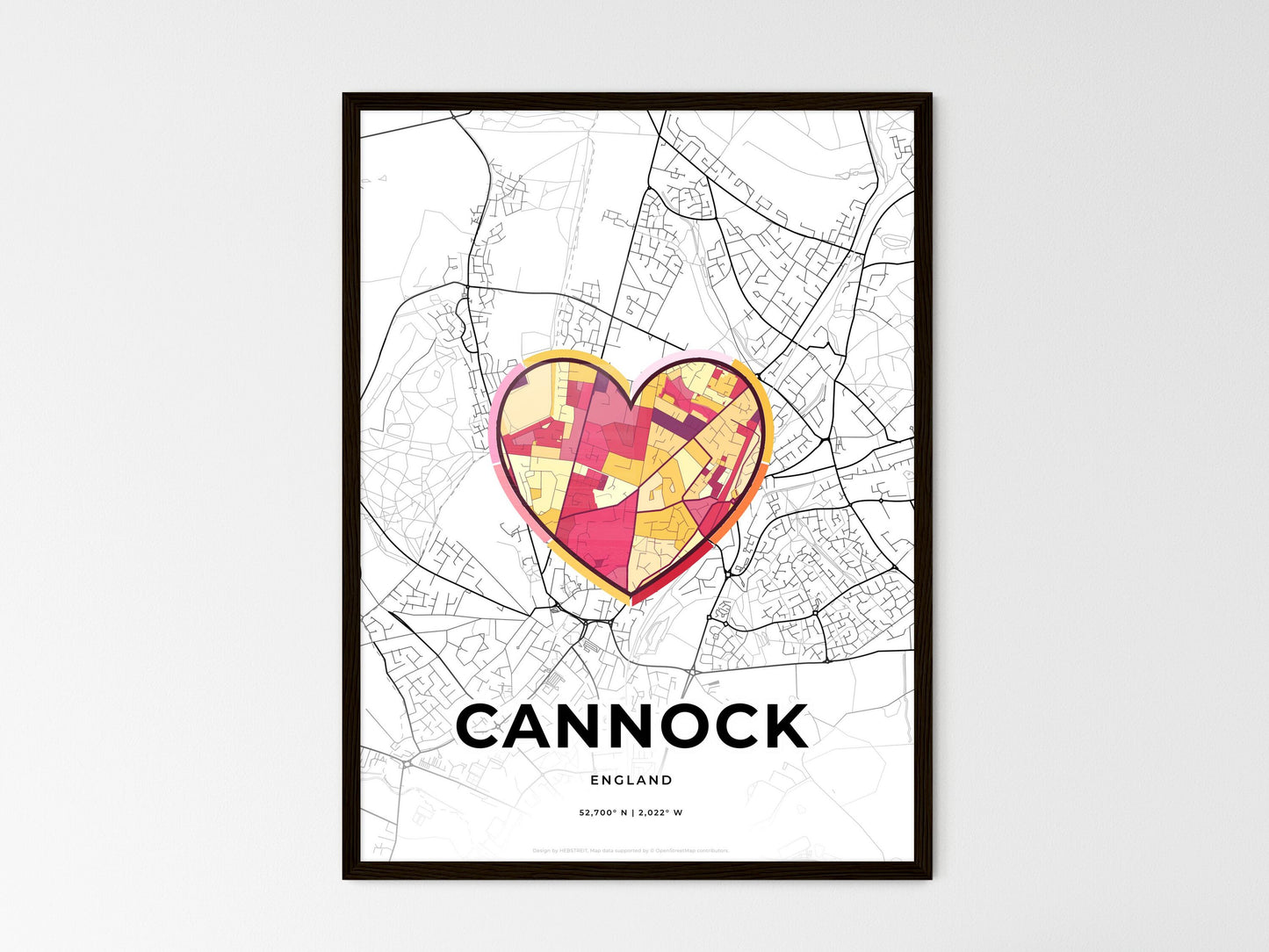 Our map of Cannock England shows minimalist designed roads, railroads and waterways combined with colorful urban areas within one icon.