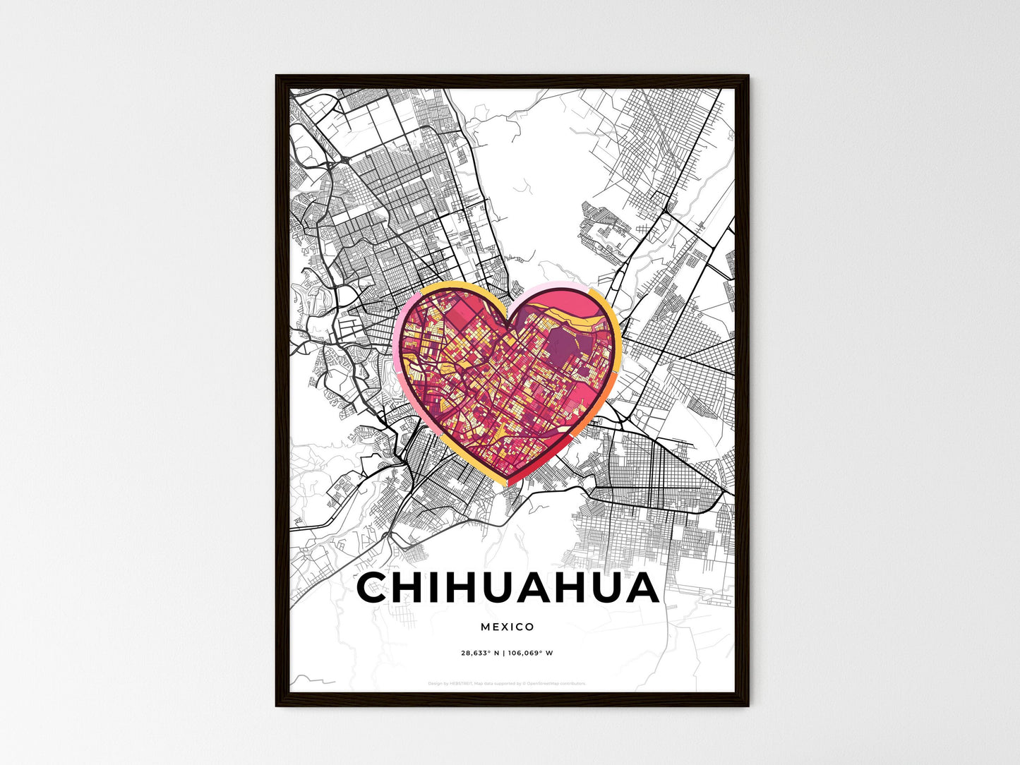 Immerse yourself in the vibrant history of Chihuahua, Mexico, through this captivating map art. Journey back to its origins, where legends and traditions intertwine. Explore its rich cultural tapestry, from its renowned Casa Chihuahua Museum to the stunning Catedral Metropolitana. As you gaze upon this abstract representation, feel the pulse of the city, its vibrant energy and enduring spirit. Whether a cherished gift for a loved one or an exquisite addition to your home décor, this map invites you to delve into the heart of Chihuahua and discover the essence of its captivating allure.