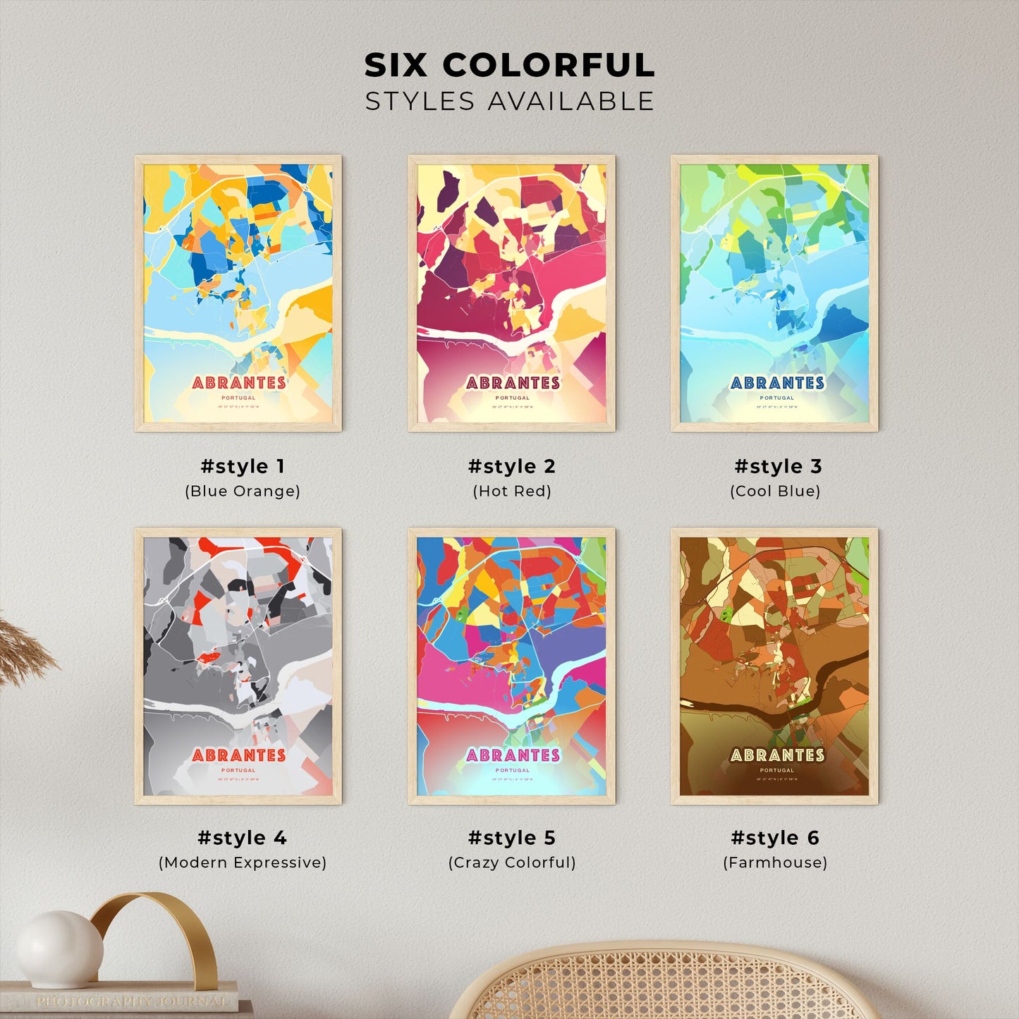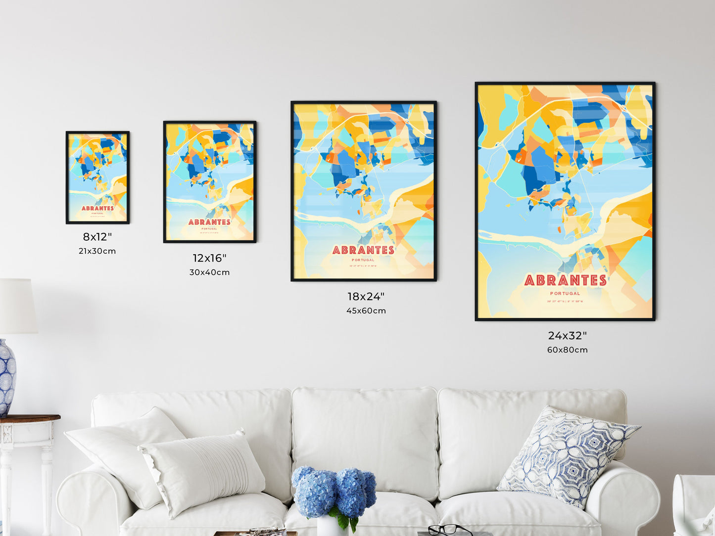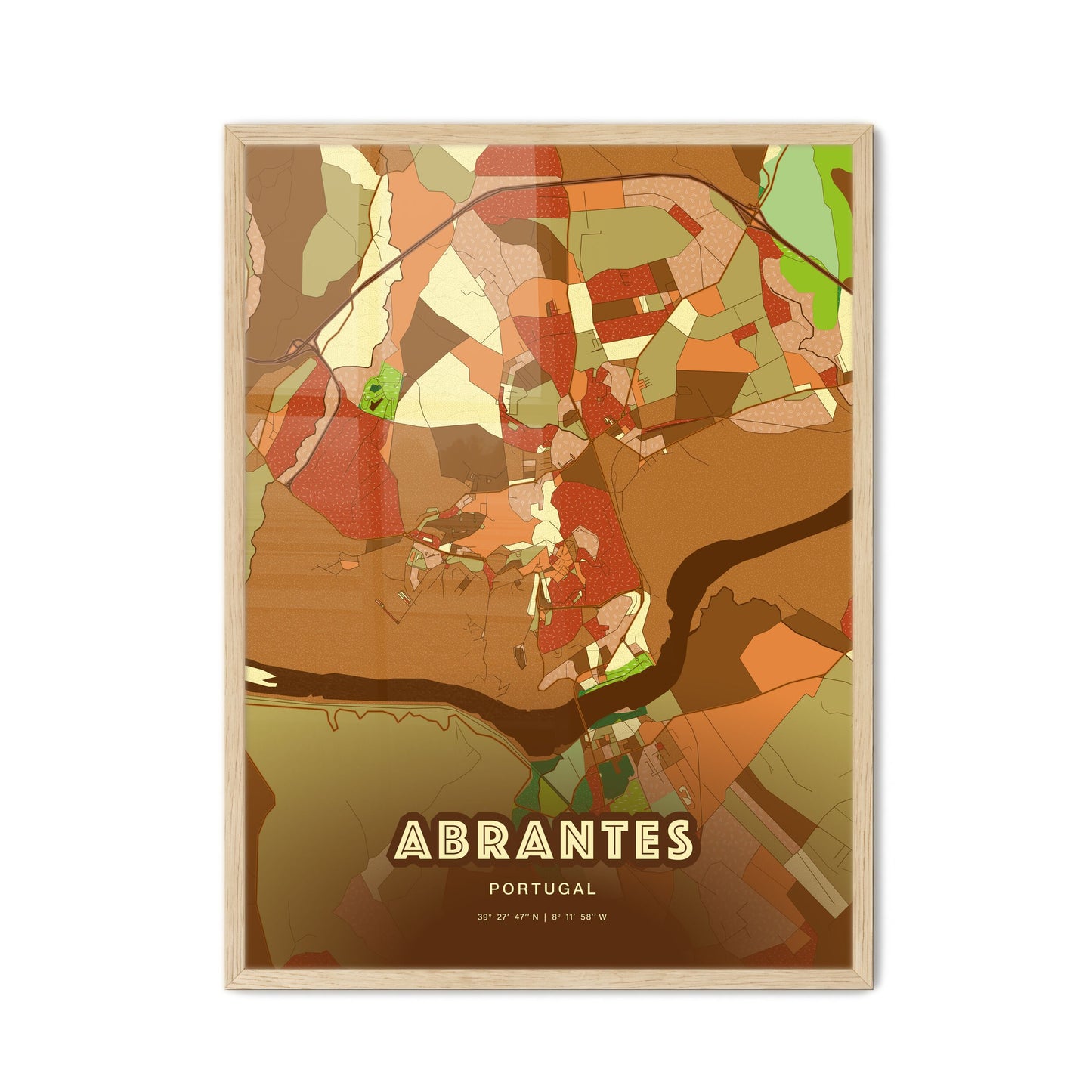 Colorful ABRANTES PORTUGAL Fine Art Map Poster | Customizable