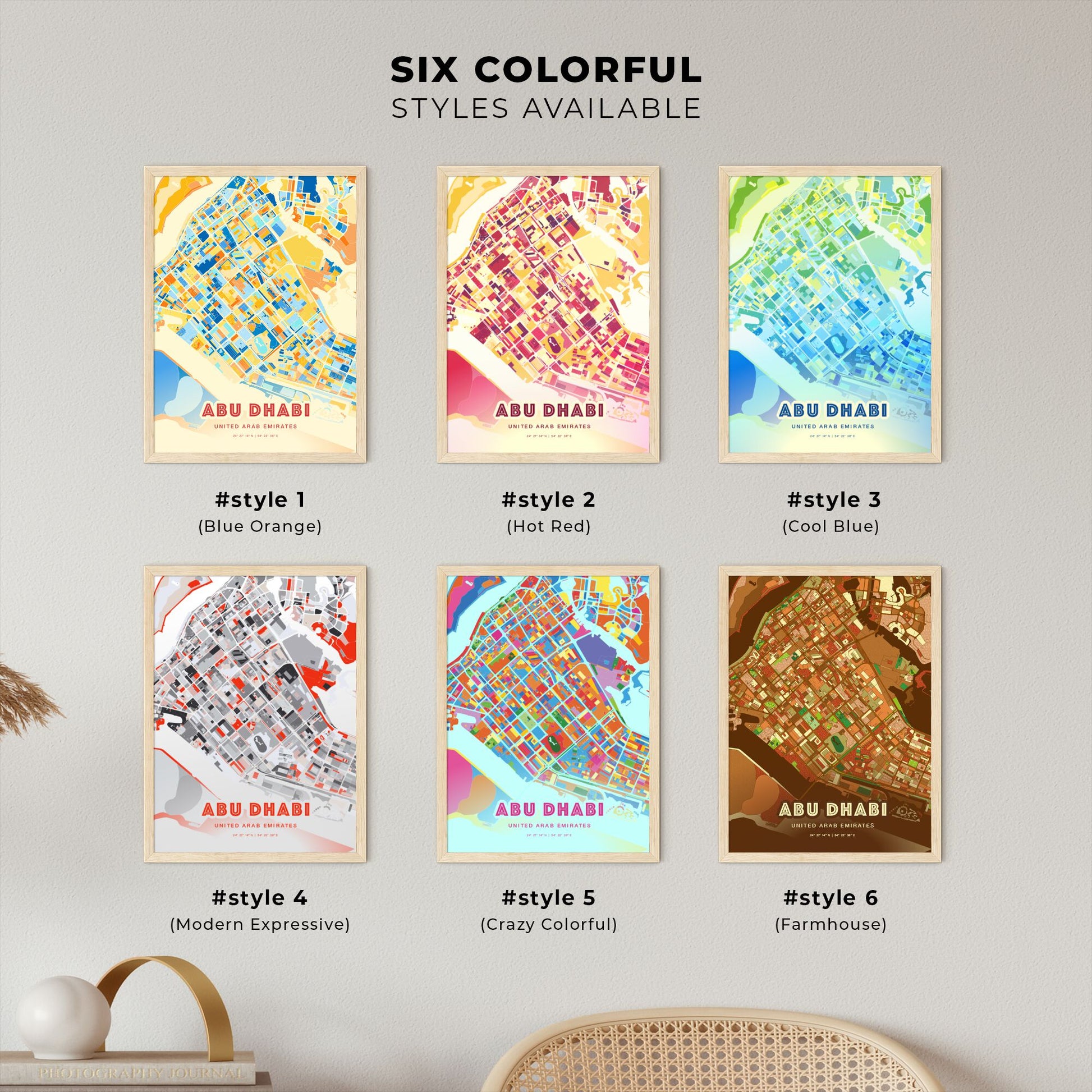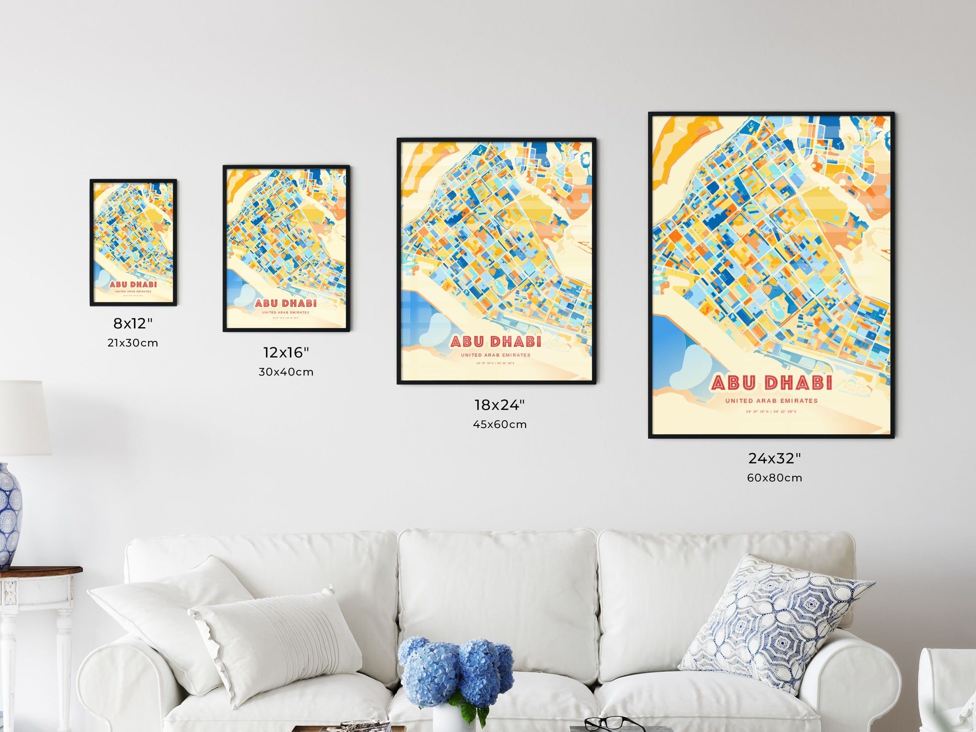 Colorful ABU DHABI UNITED ARAB EMIRATES Fine Art Map Poster | Customizable