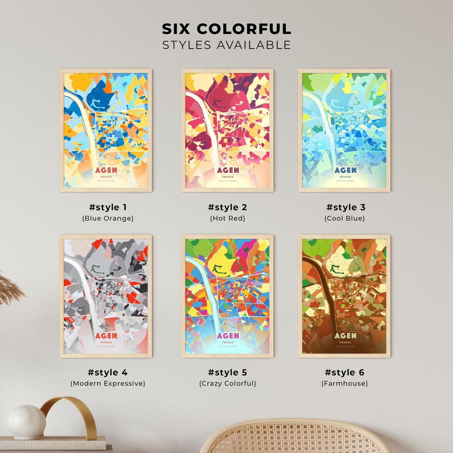 Colorful AGEN FRANCE Fine Art Map Poster | Customizable