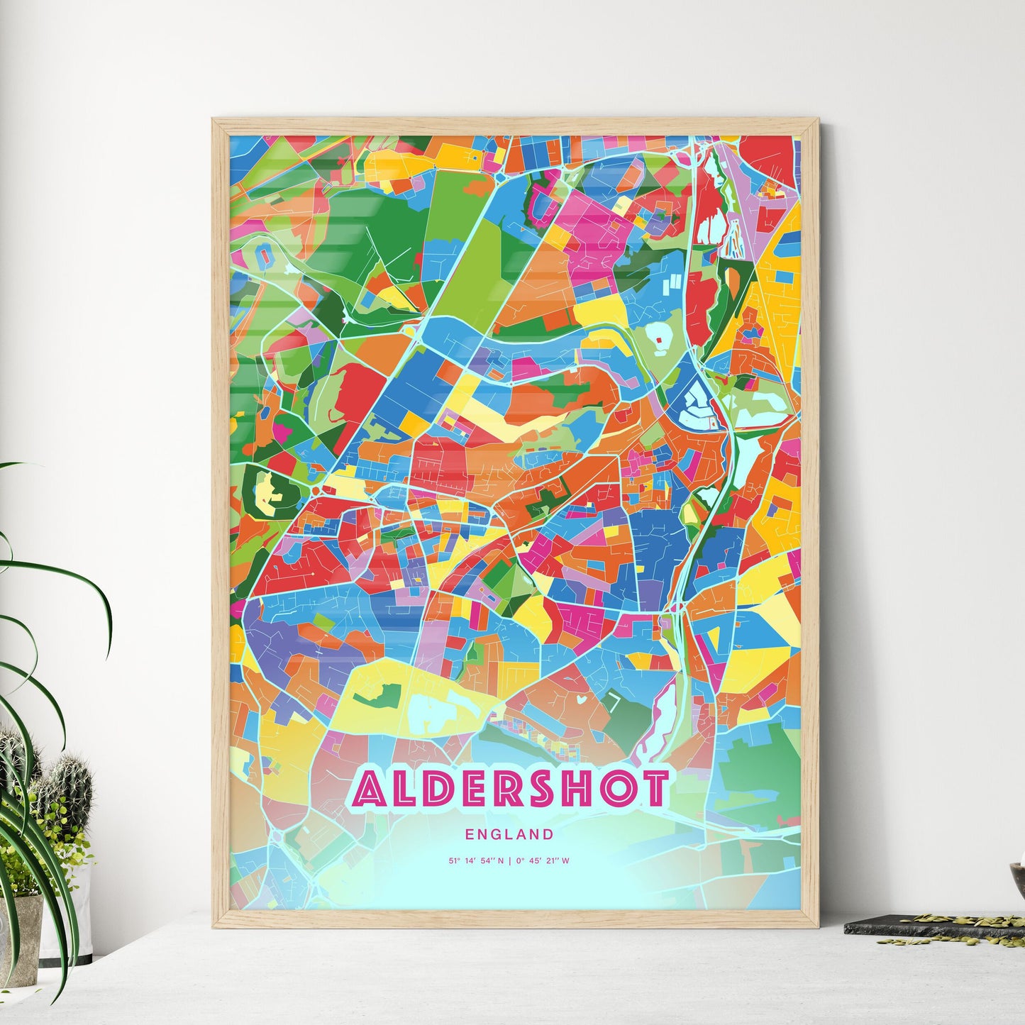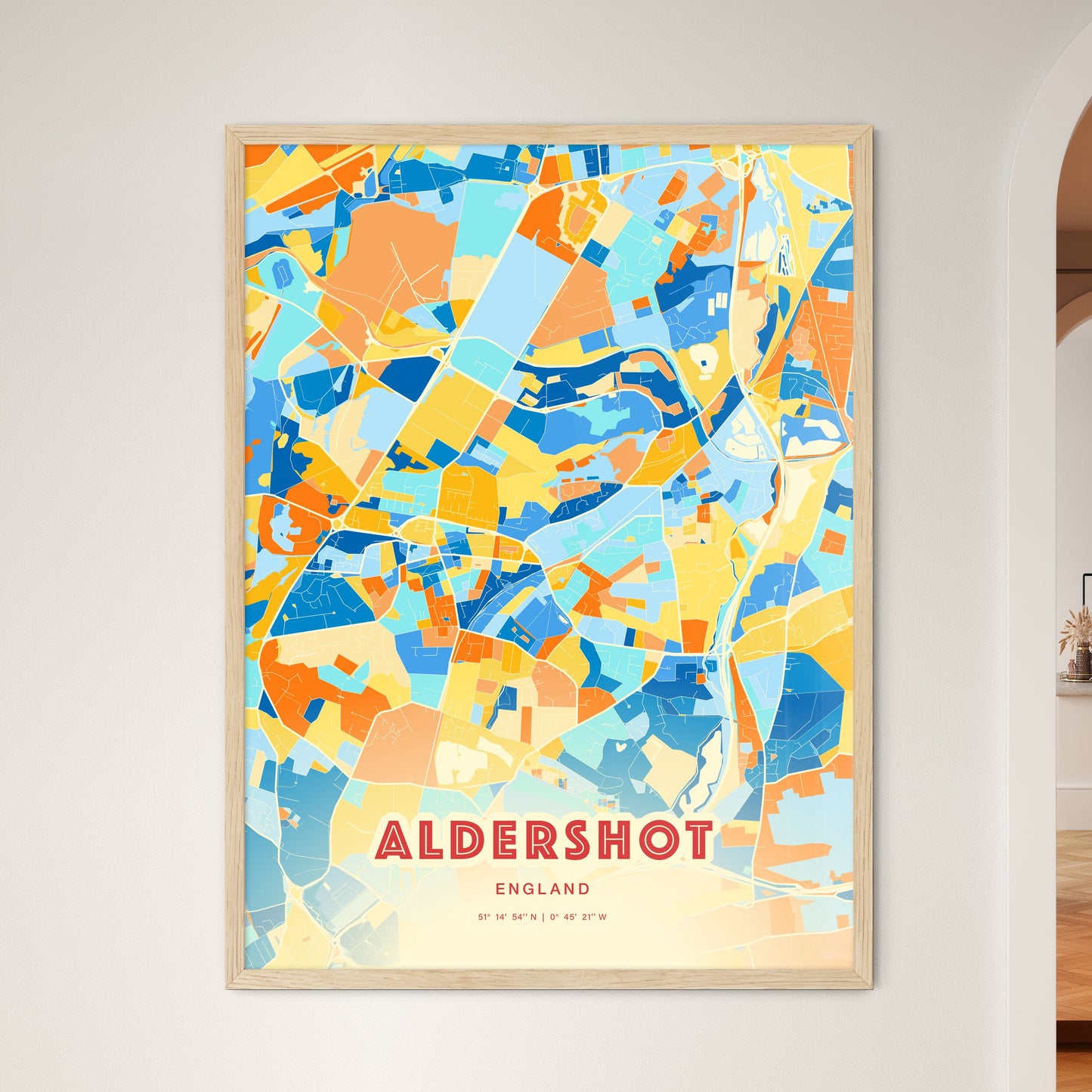 Colorful Aldershot England Fine Art Map Poster | Customizable