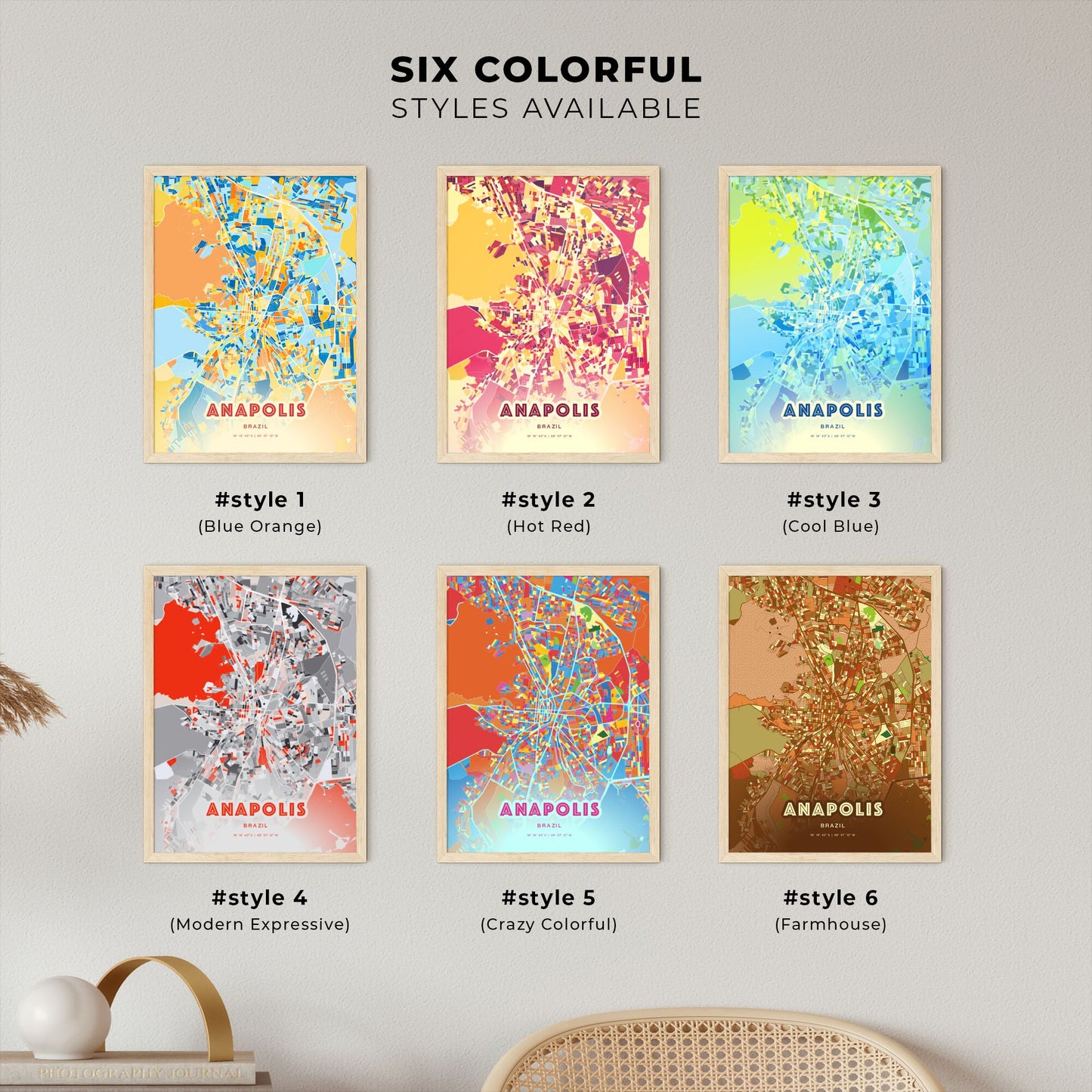 Colorful ANAPOLIS BRAZIL Fine Art Map Poster | Customizable