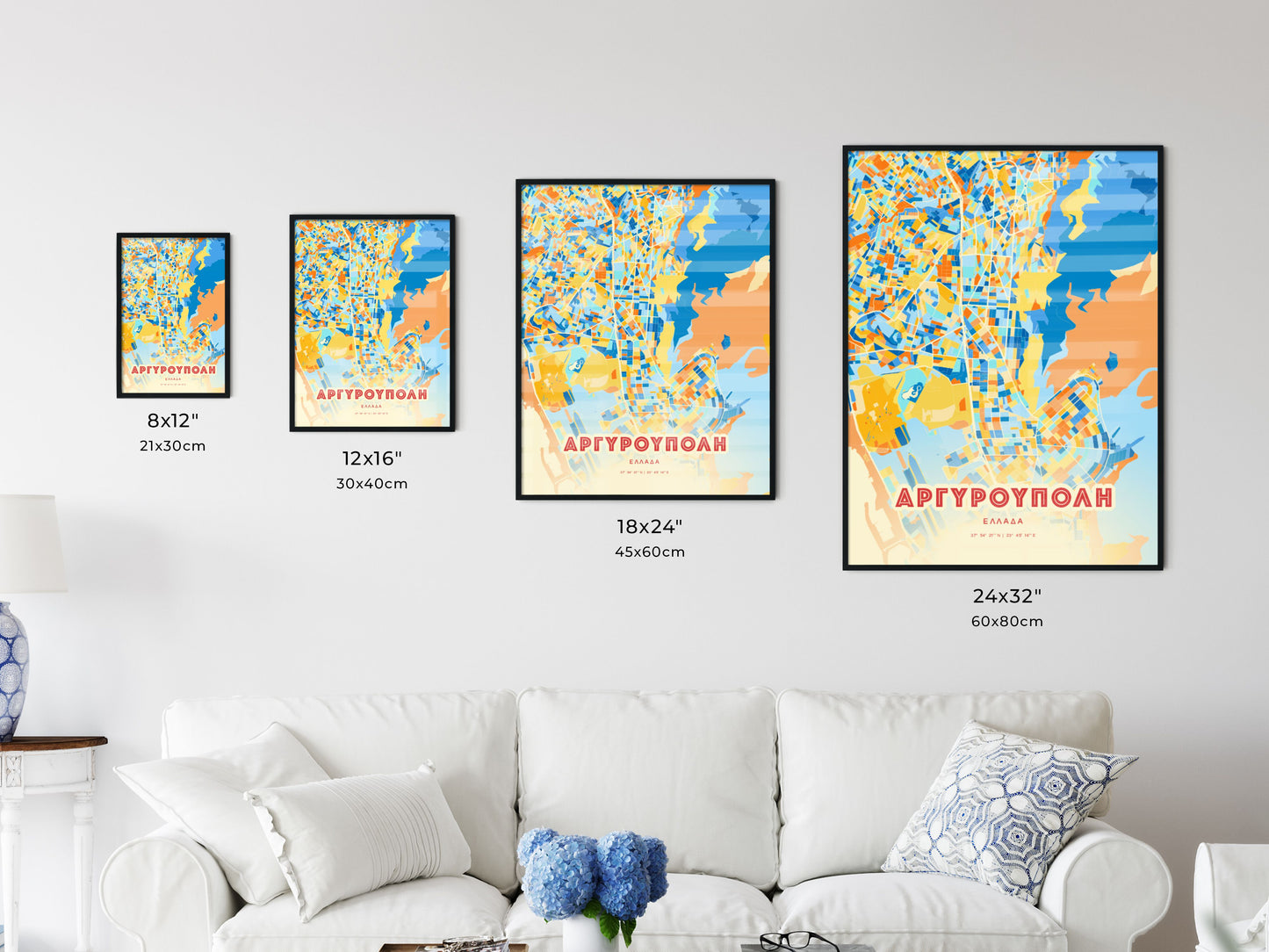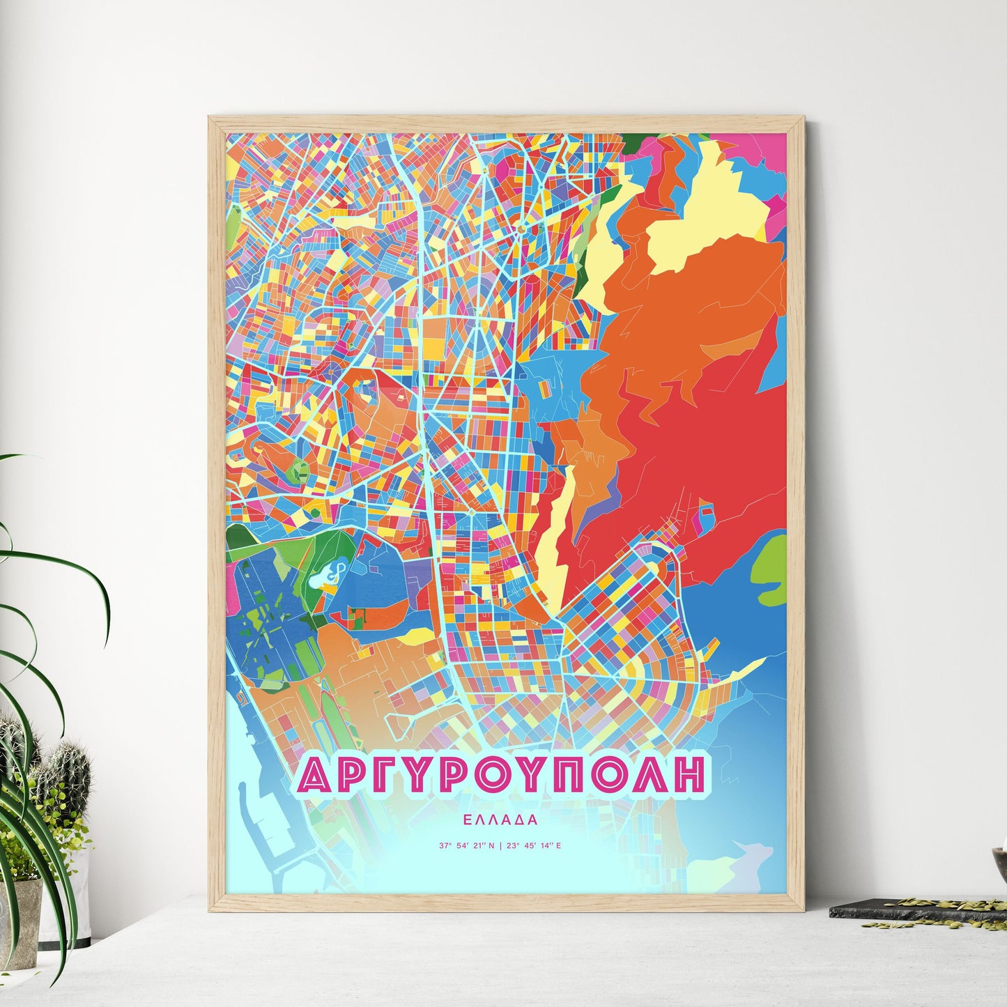 Colorful ARGYROUPOLI GREECE Fine Art Map Poster | Customizable