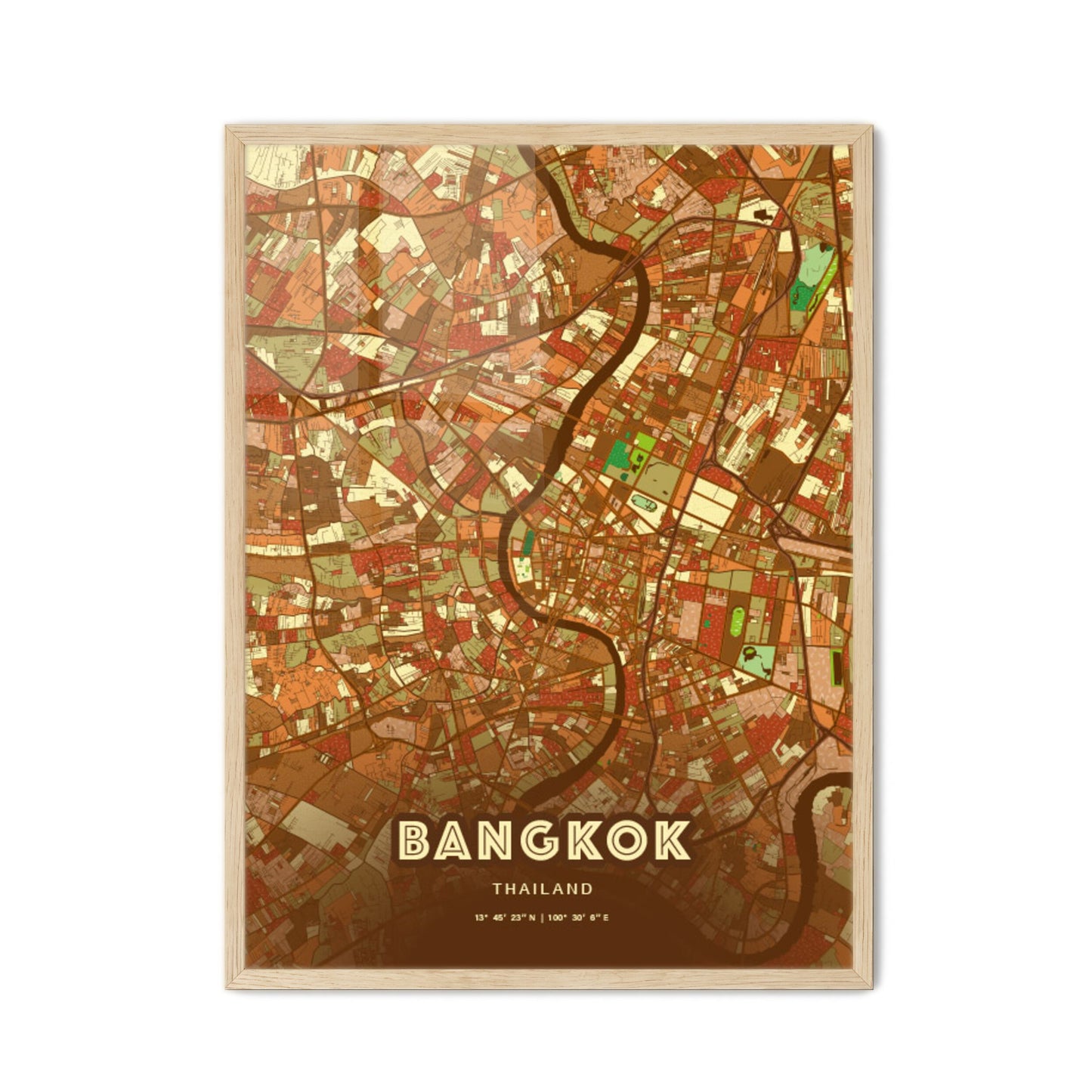 Our BANGKOK THAILAND map has bright streets, railroads and waterways combined with colorful city areas. The city map will be an eye-catcher in any room with its rich detail and colorful freshness.