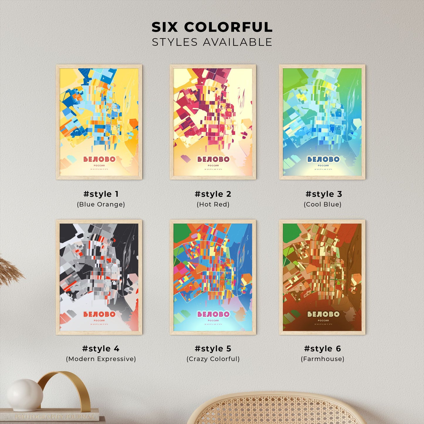 Colorful BELOVO RUSSIA Fine Art Map Poster | Customizable