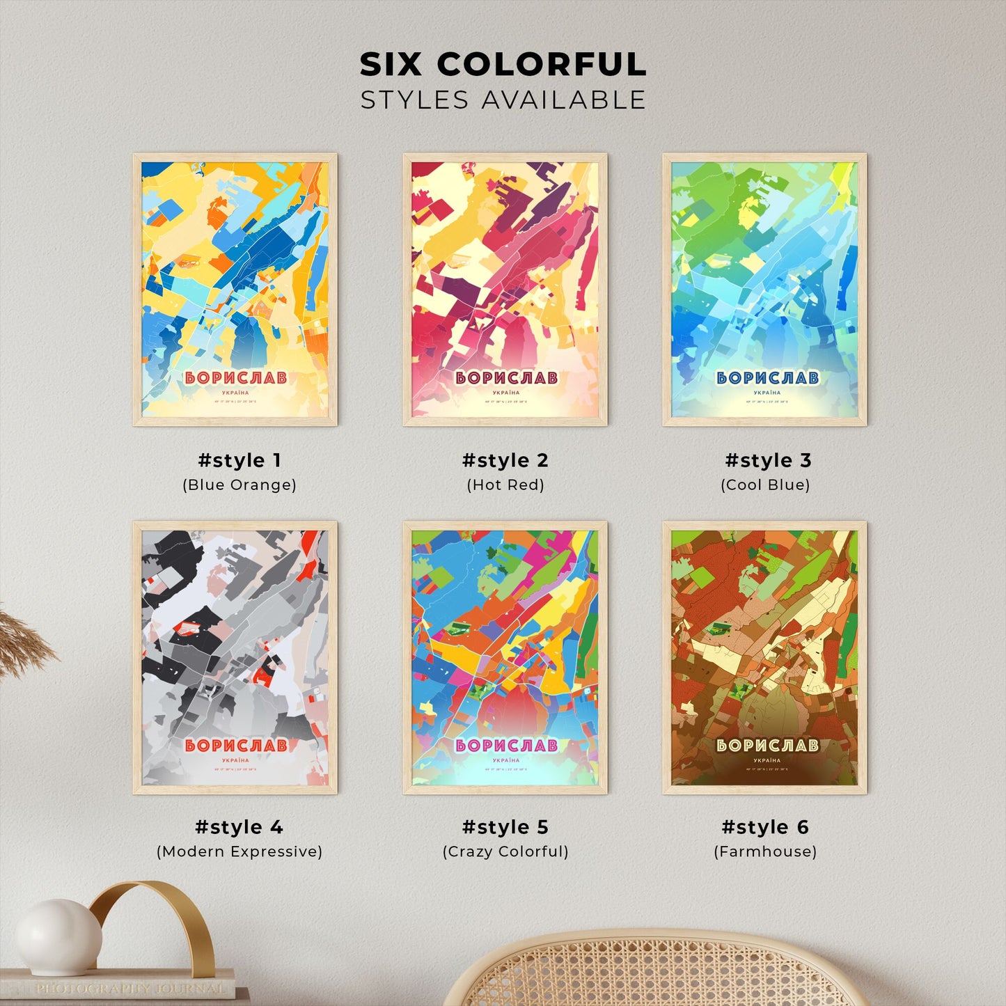 Colorful BORYSLAV UKRAINE Fine Art Map Poster | Customizable