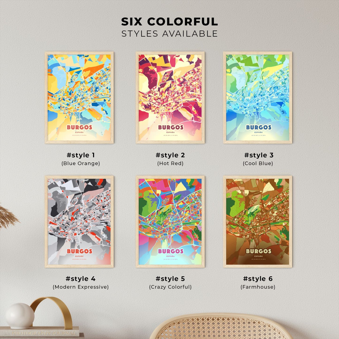 Colorful BURGOS SPAIN Fine Art Map Poster | Customizable