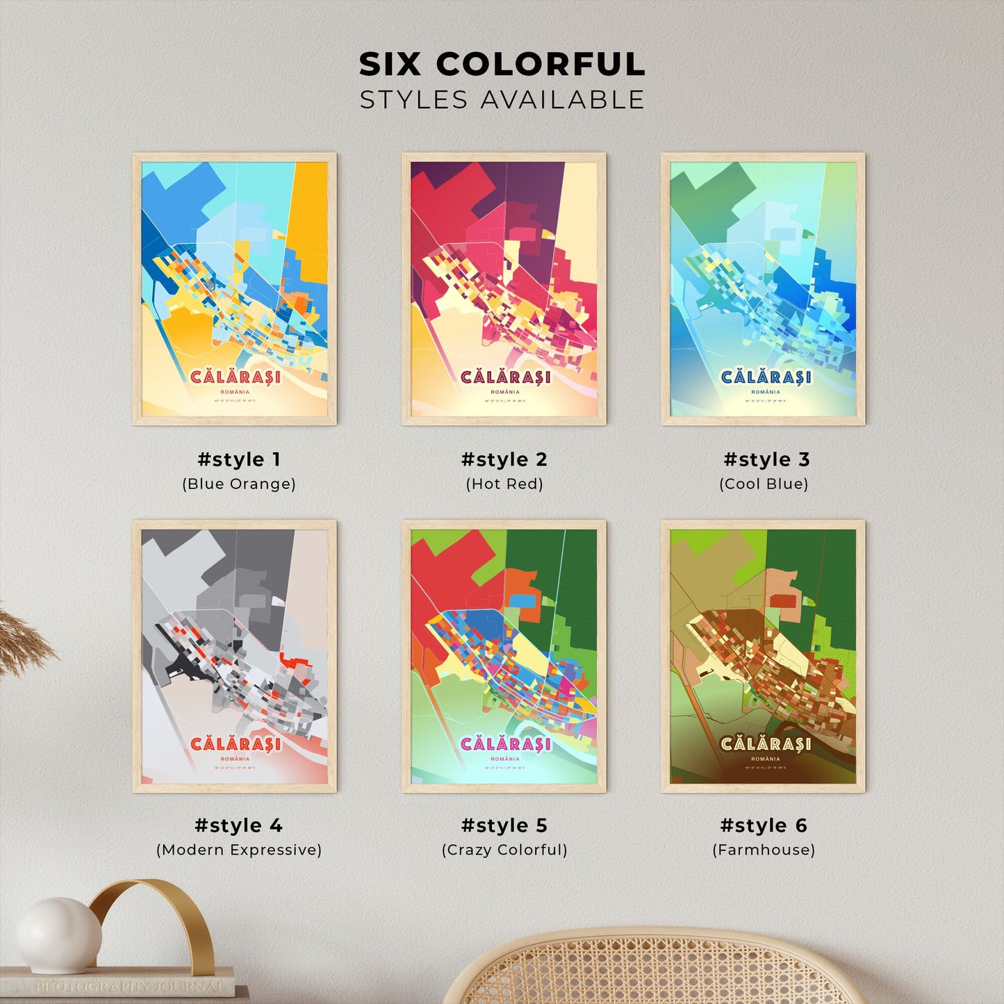Colorful CĂLĂRAȘI ROMANIA Fine Art Map Poster | Customizable