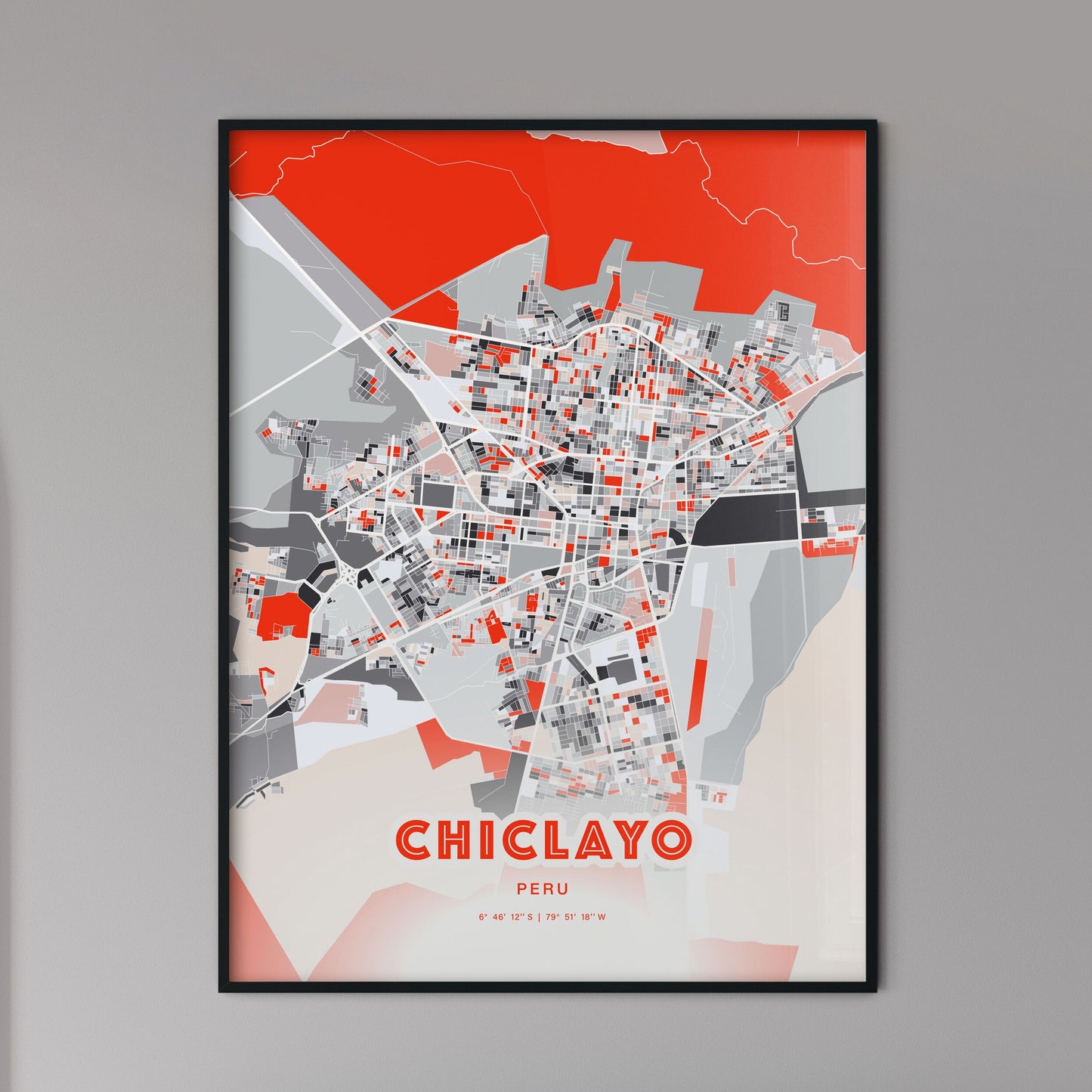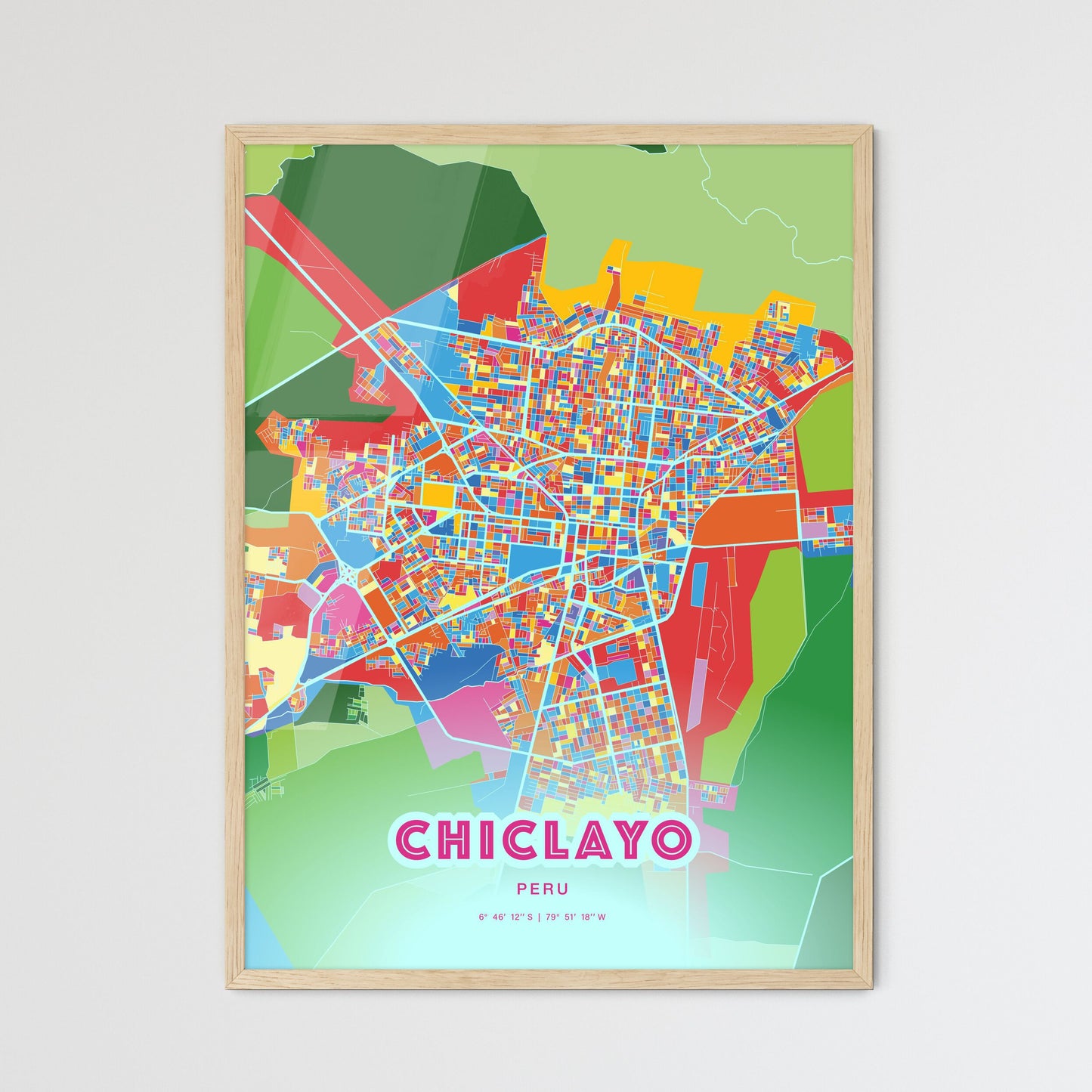 Colorful Chiclayo Peru Fine Art Map Poster | Customizable