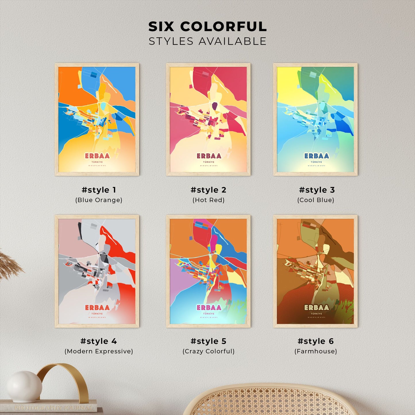 Colorful ERBAA TURKEY Fine Art Map Poster | Customizable