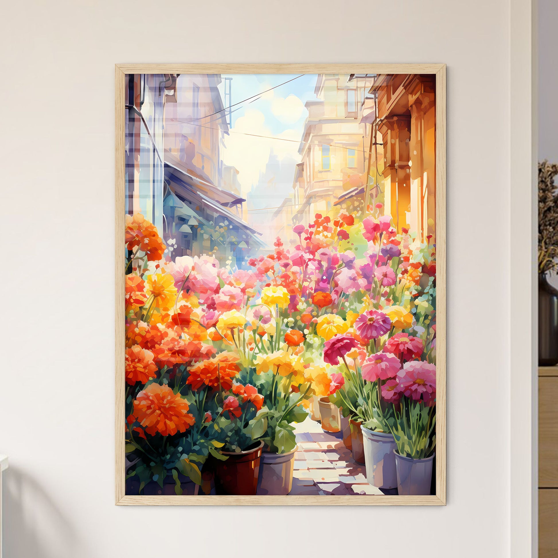 Colorful Flowers In A Street Art Print