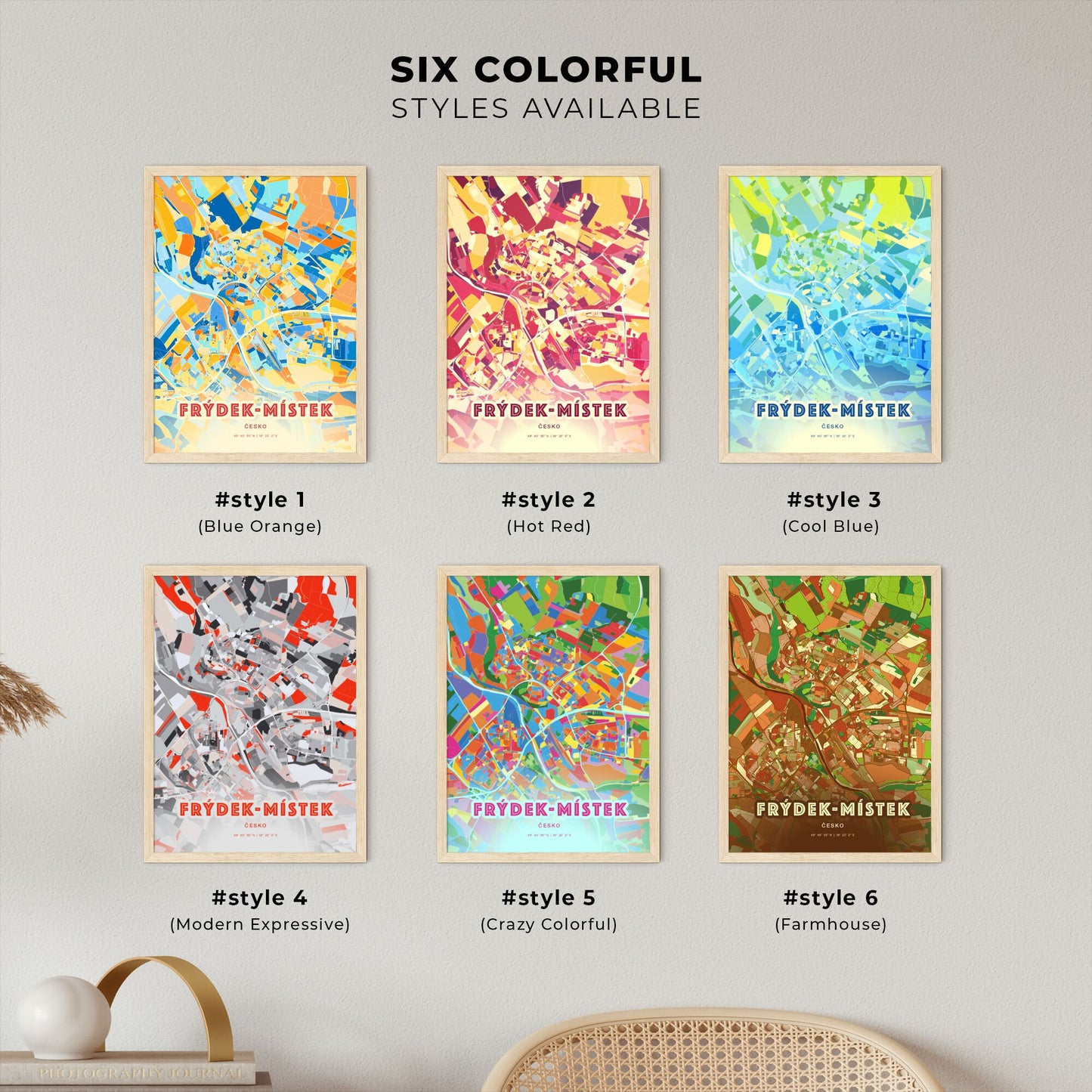Colorful FRÝDEK-MÍSTEK CZECHIA Fine Art Map Poster | Customizable