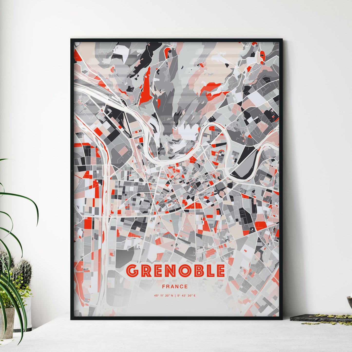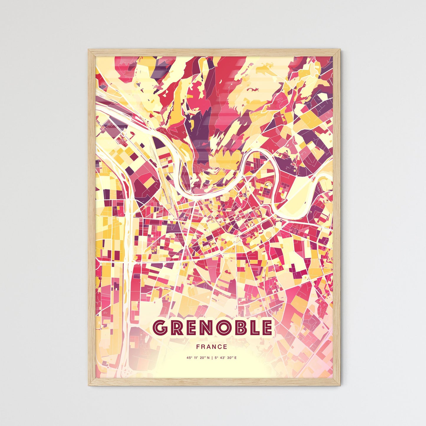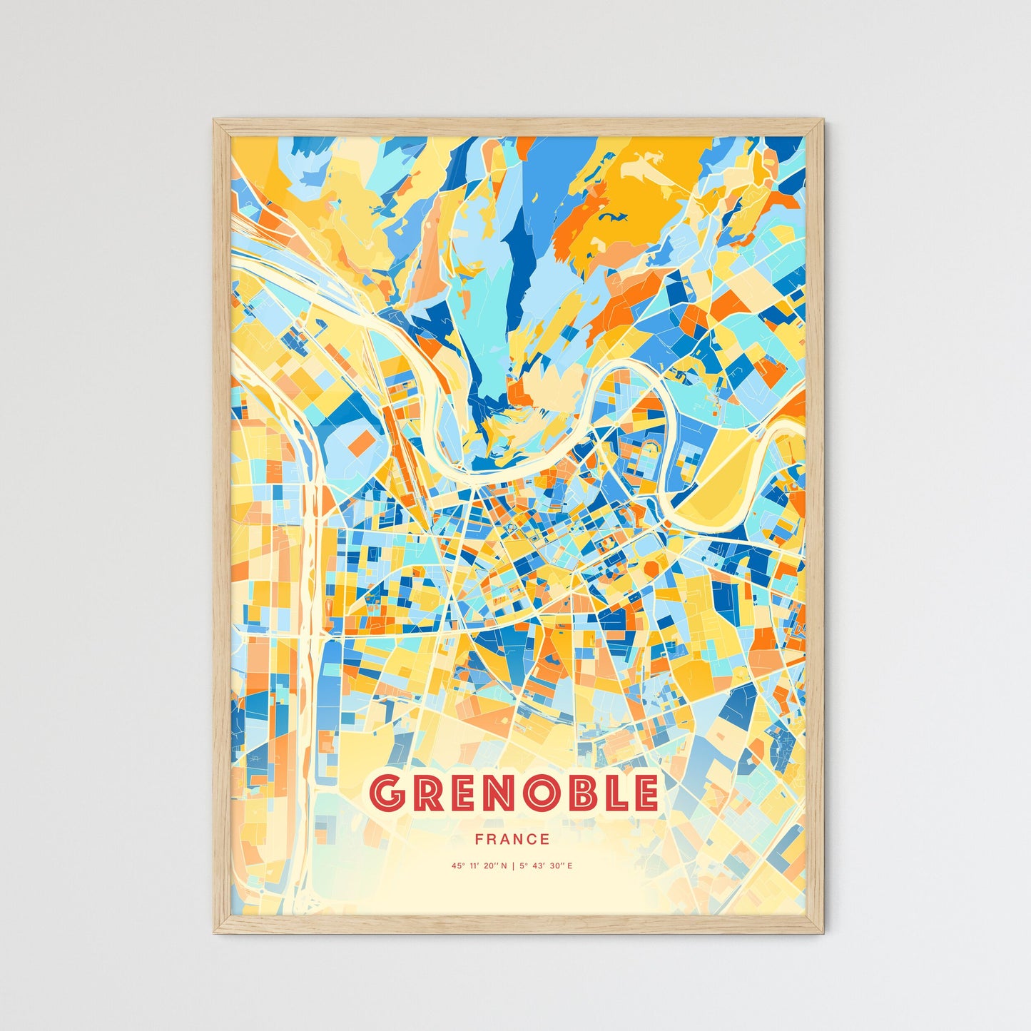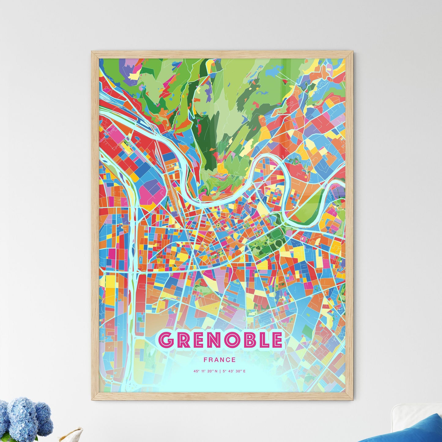 Colorful Grenoble France Fine Art Map Poster | Customizable