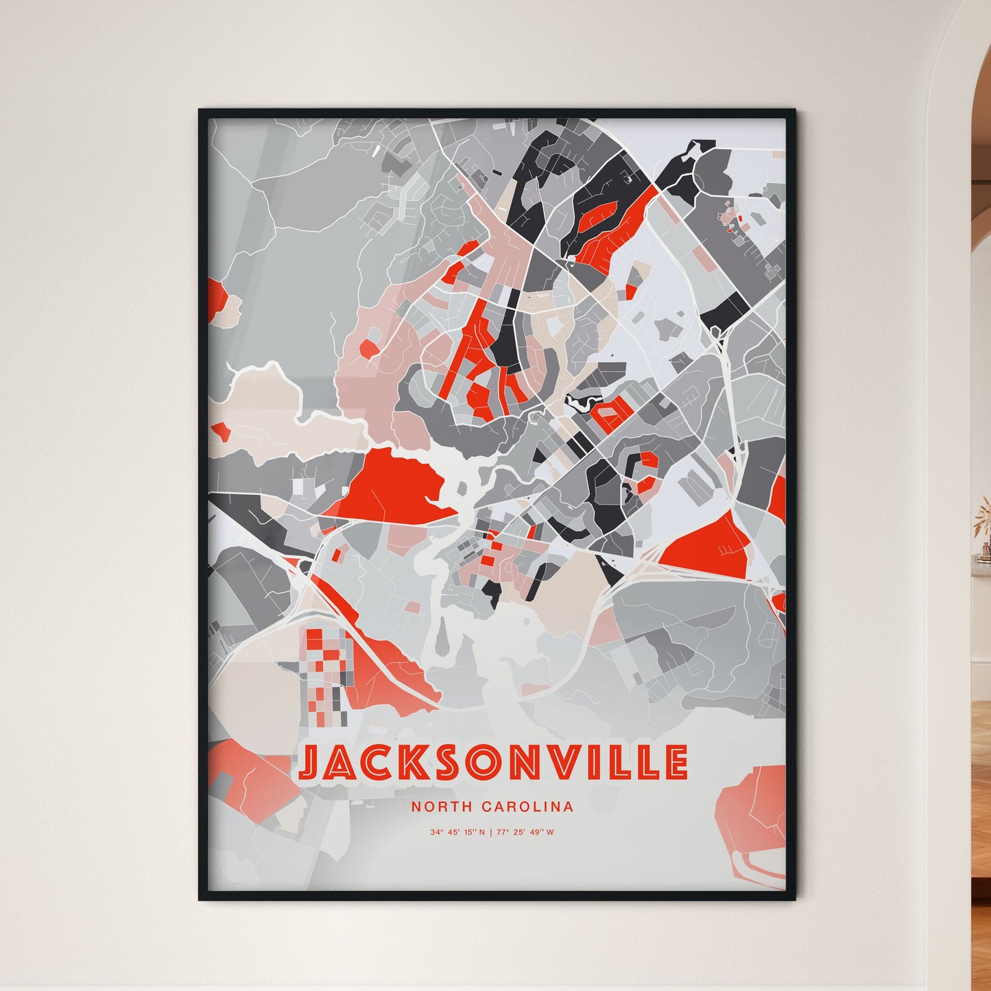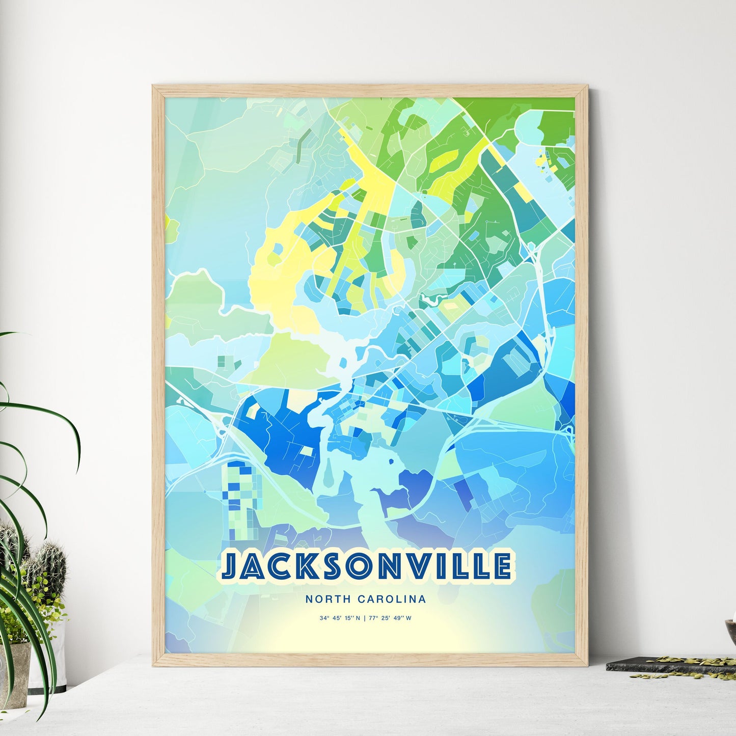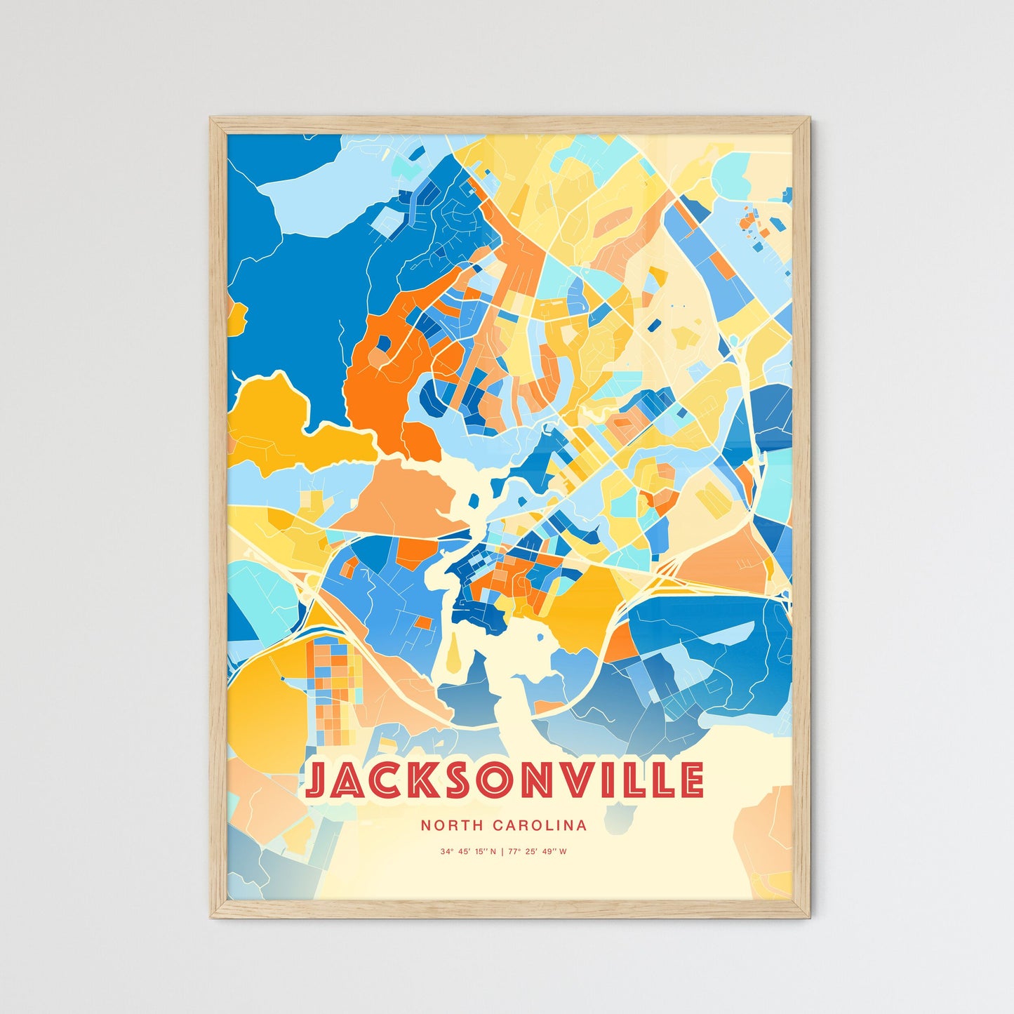 Colorful Jacksonville North Carolina Fine Art Map Poster | Customizable