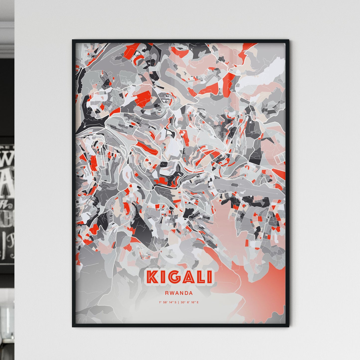 Colorful Kigali Rwanda Fine Art Map Poster | Customizable