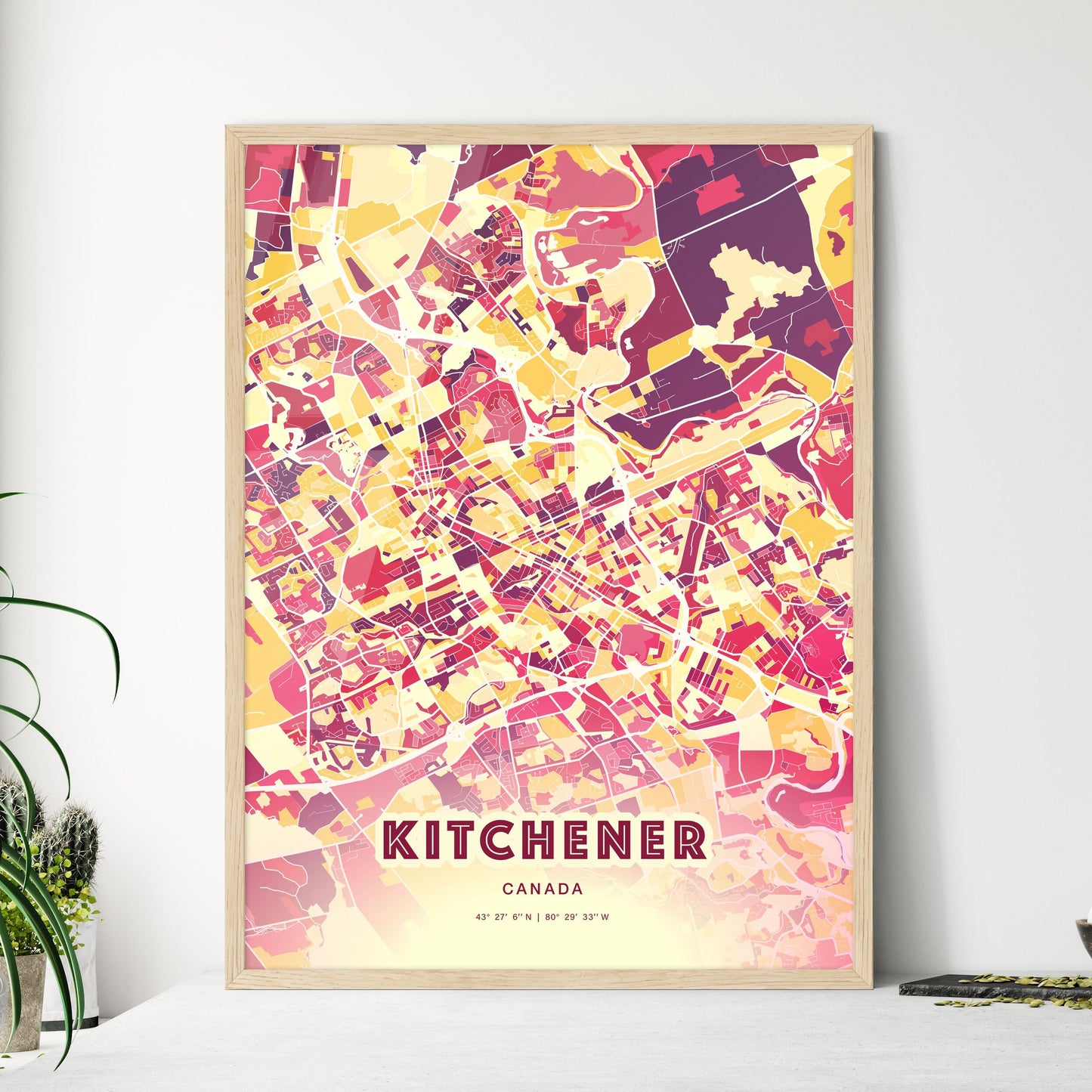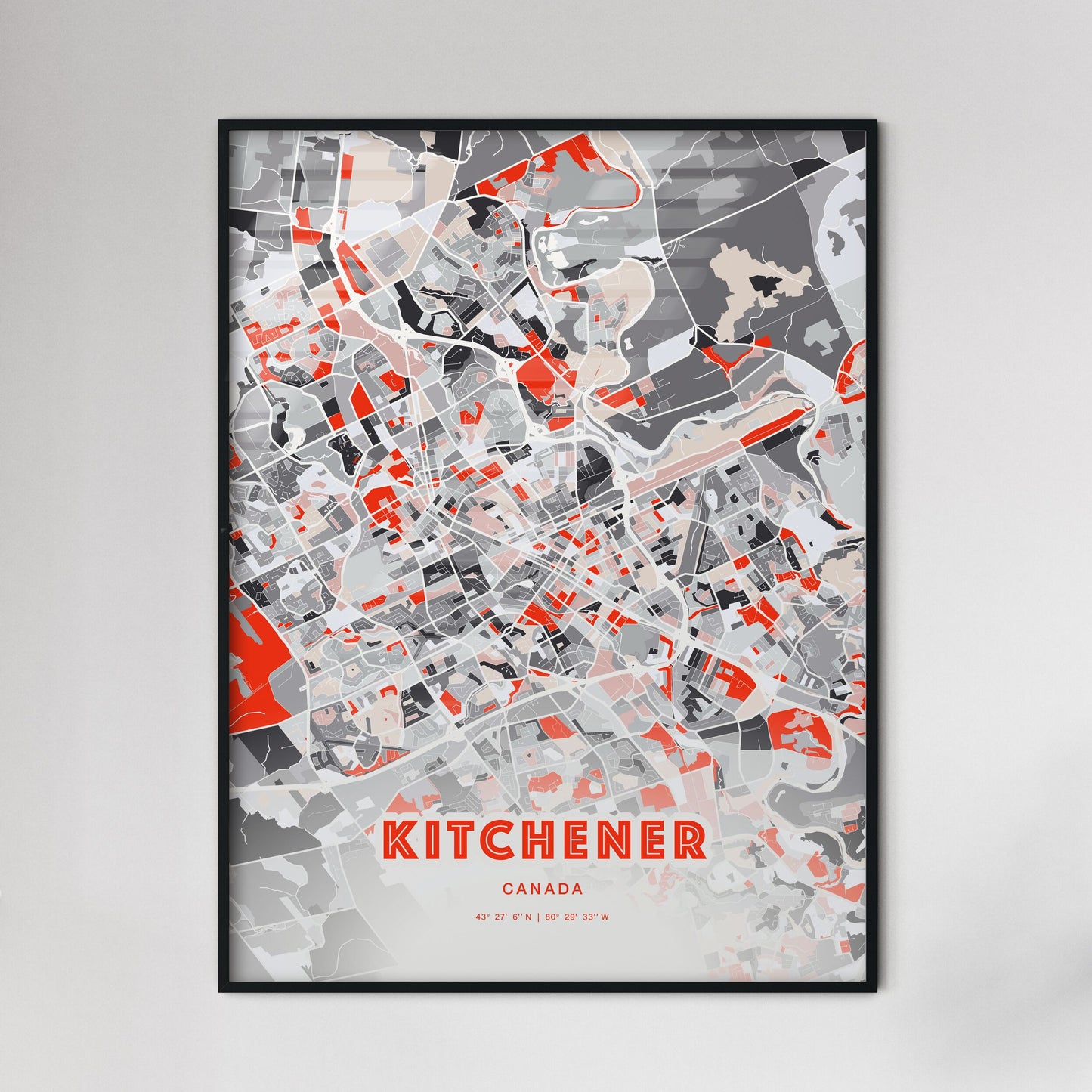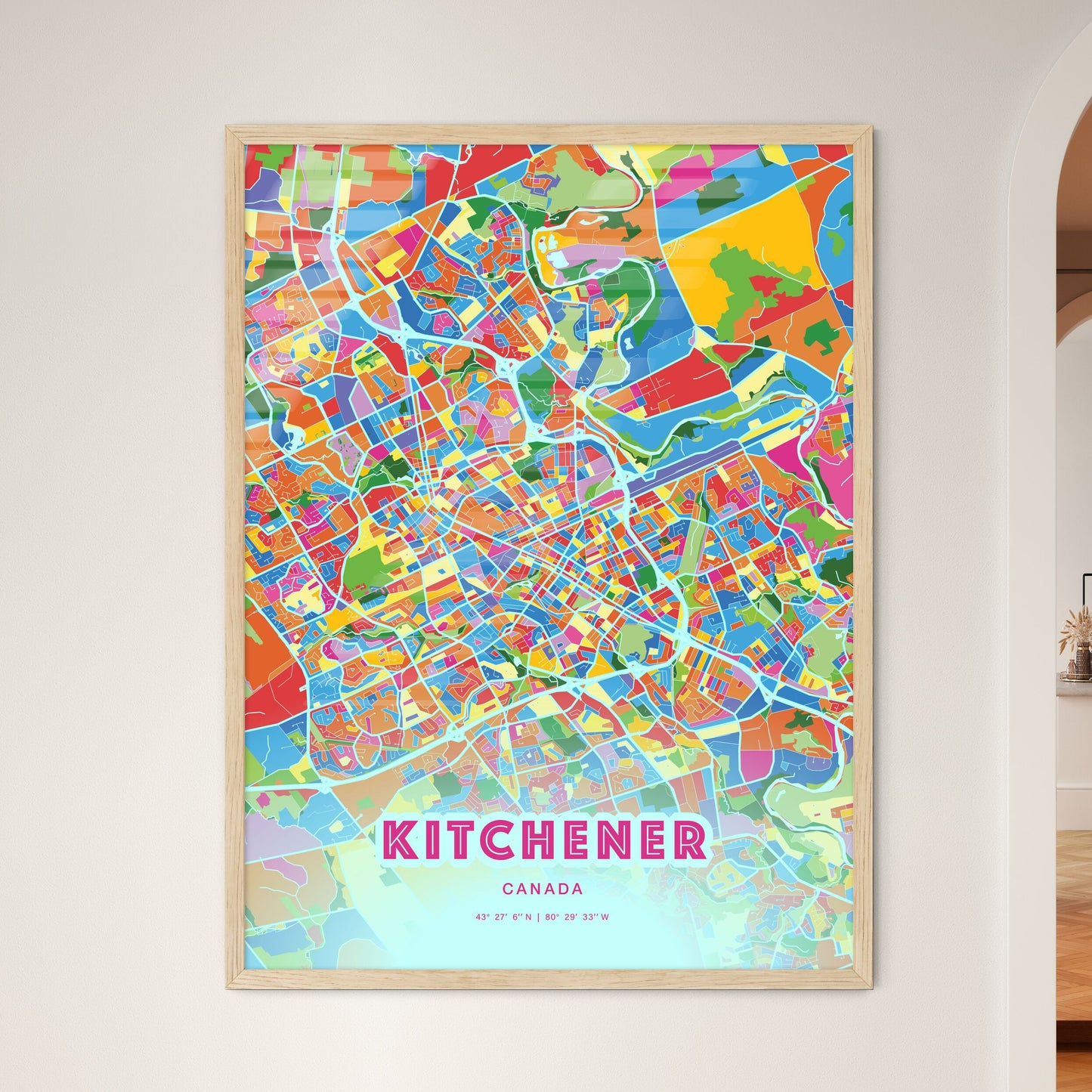 Colorful Kitchener Canada Fine Art Map Poster | Customizable
