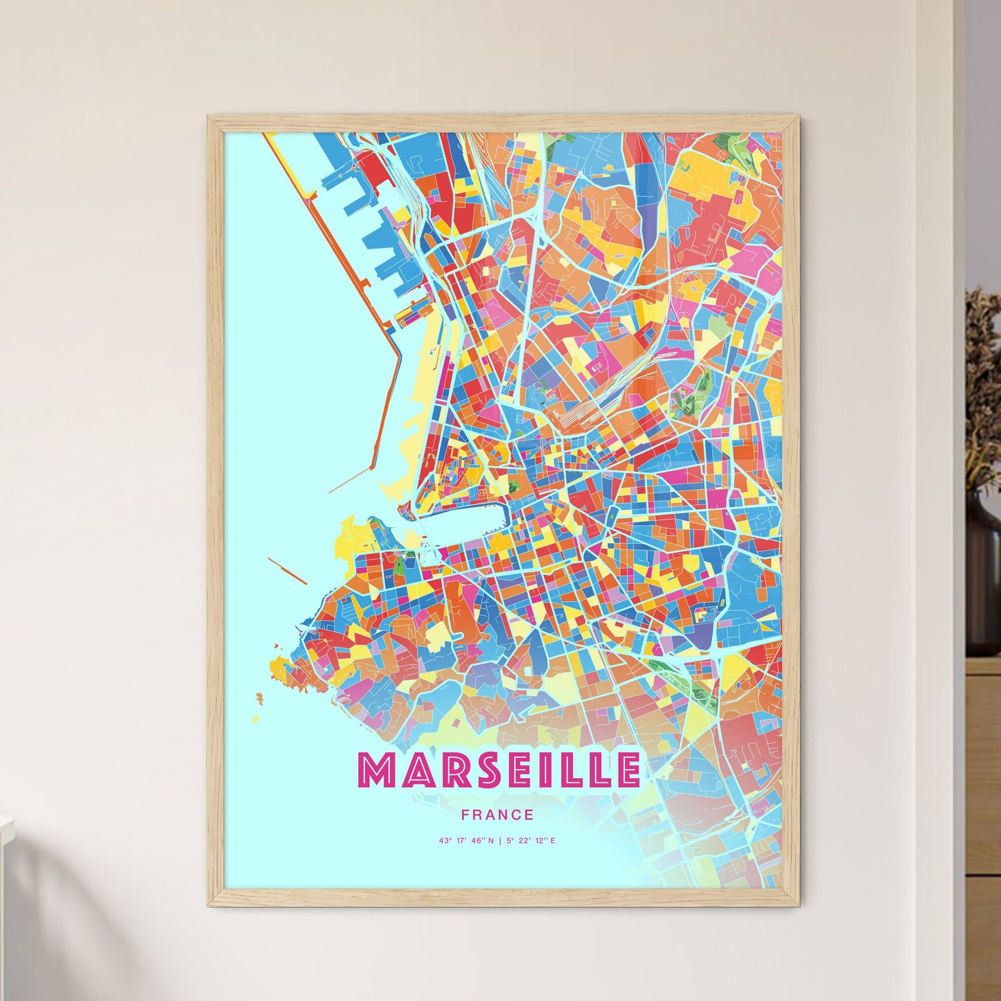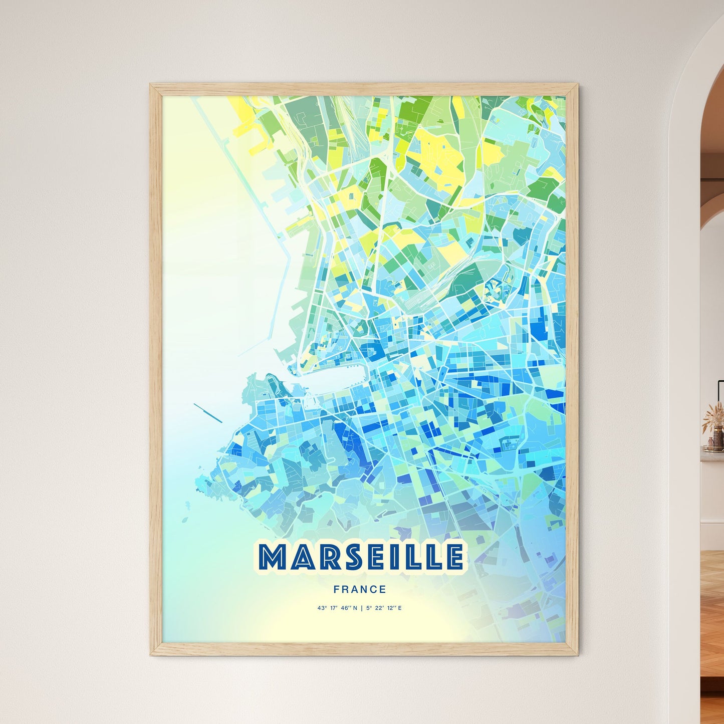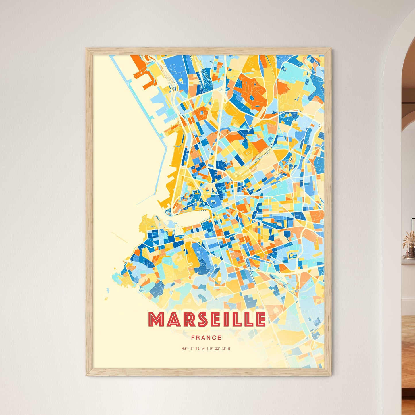 Colorful Marseille France Fine Art Map Poster | Customizable