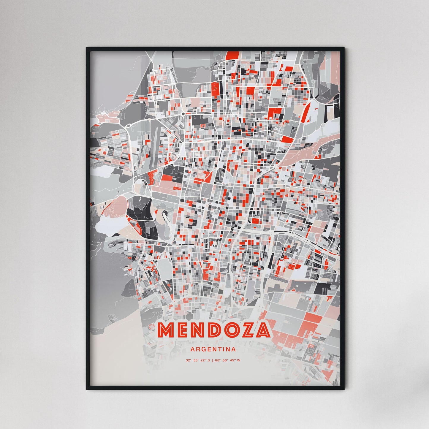 Our MENDOZA ARGENTINA map has bright streets, railroads and waterways combined with colorful city areas. The city map will be an eye-catcher in any room with its rich detail and colorful freshness.