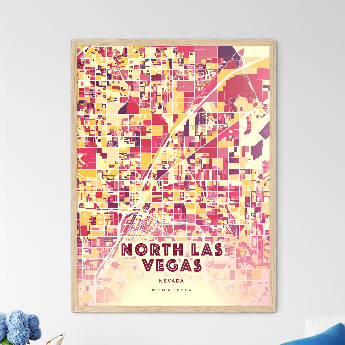 Colorful North Las Vegas Nevada Fine Art Map Poster | Customizable