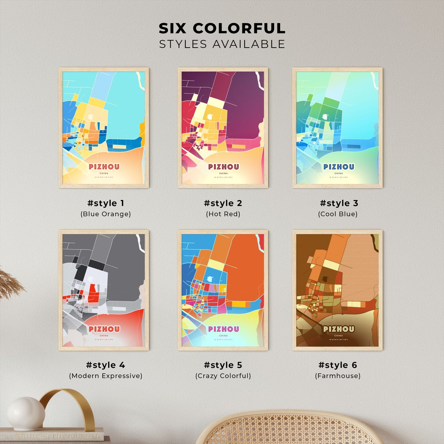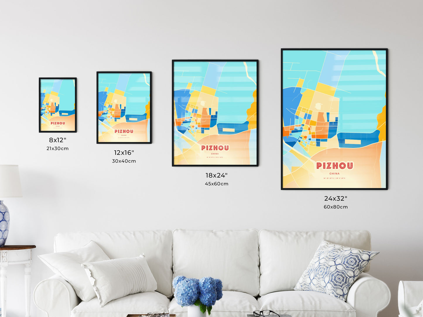 Colorful PIZHOU CHINA Fine Art Map Poster | Customizable