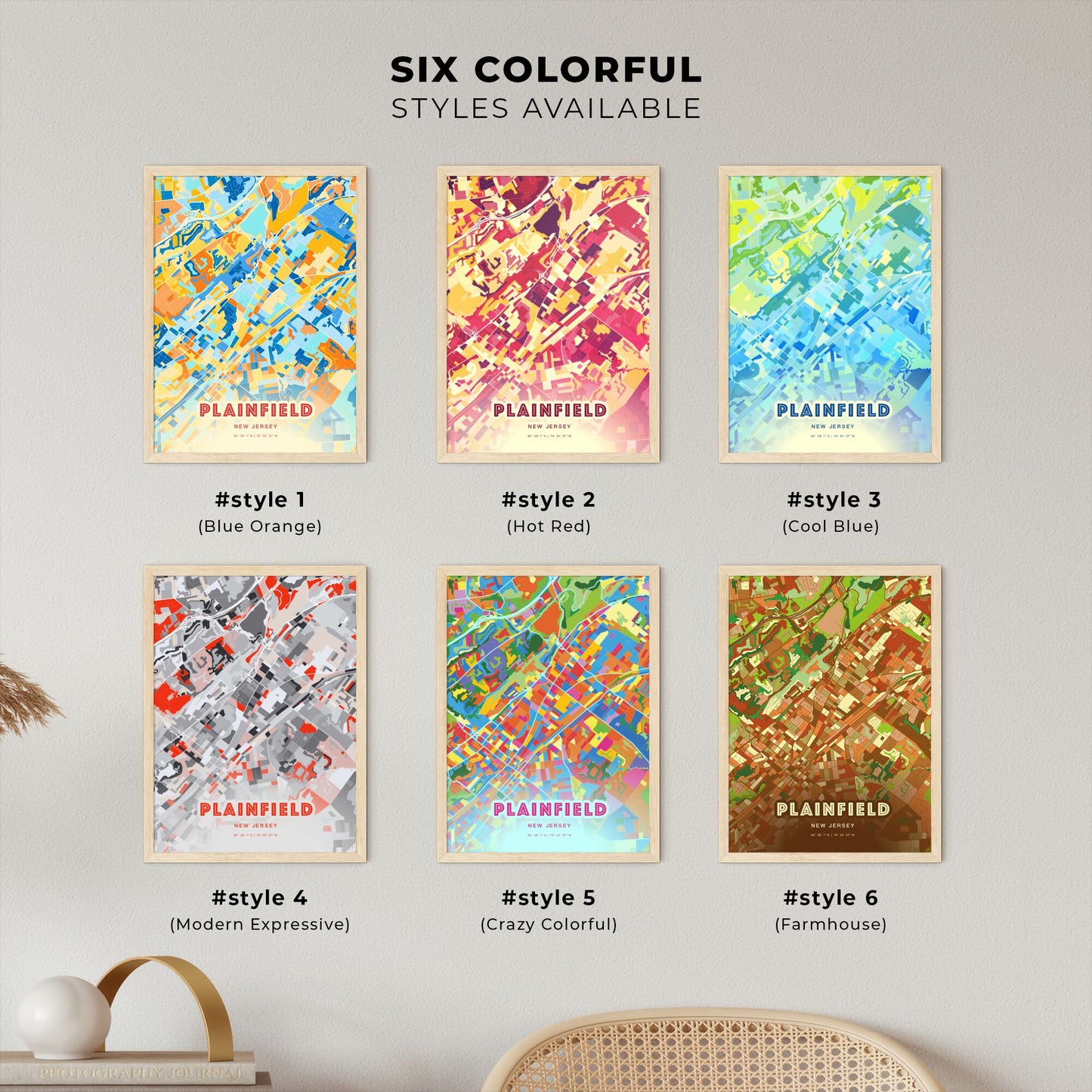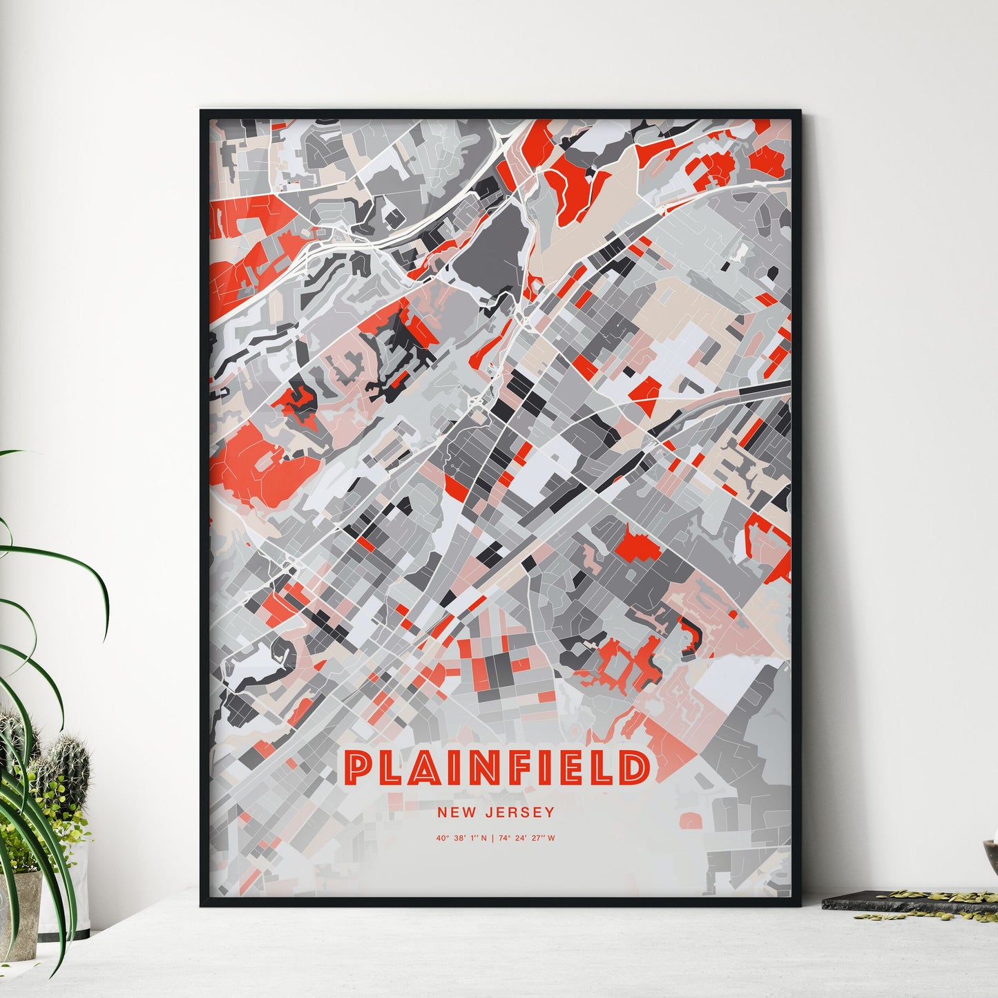 Colorful PLAINFIELD NEW JERSEY Fine Art Map Poster | Customizable