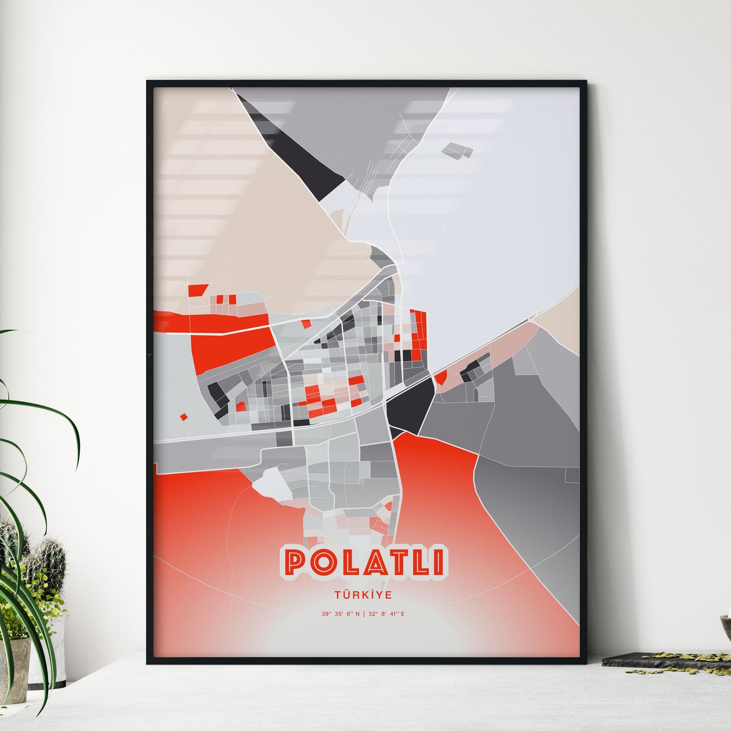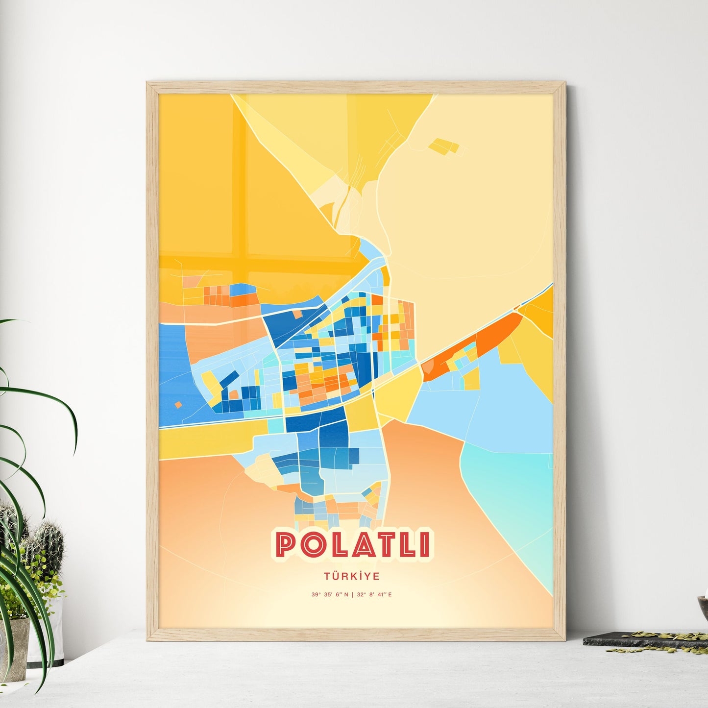 Polatlı city map - with fresh bright orange and blue colors. Our POLATLI TÜRKİYE map has bright streets, railroads and waterways combined with colorful city areas. The city map will be an eye-catcher in any room with its rich detail and colorful freshness.