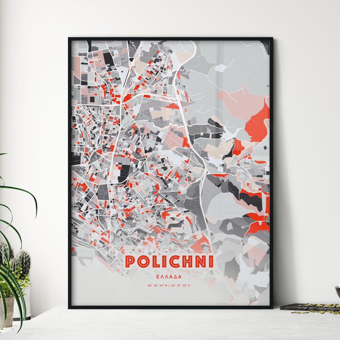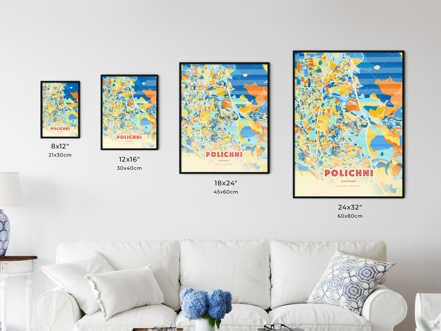 Colorful POLICHNI GREECE Fine Art Map Poster | Customizable