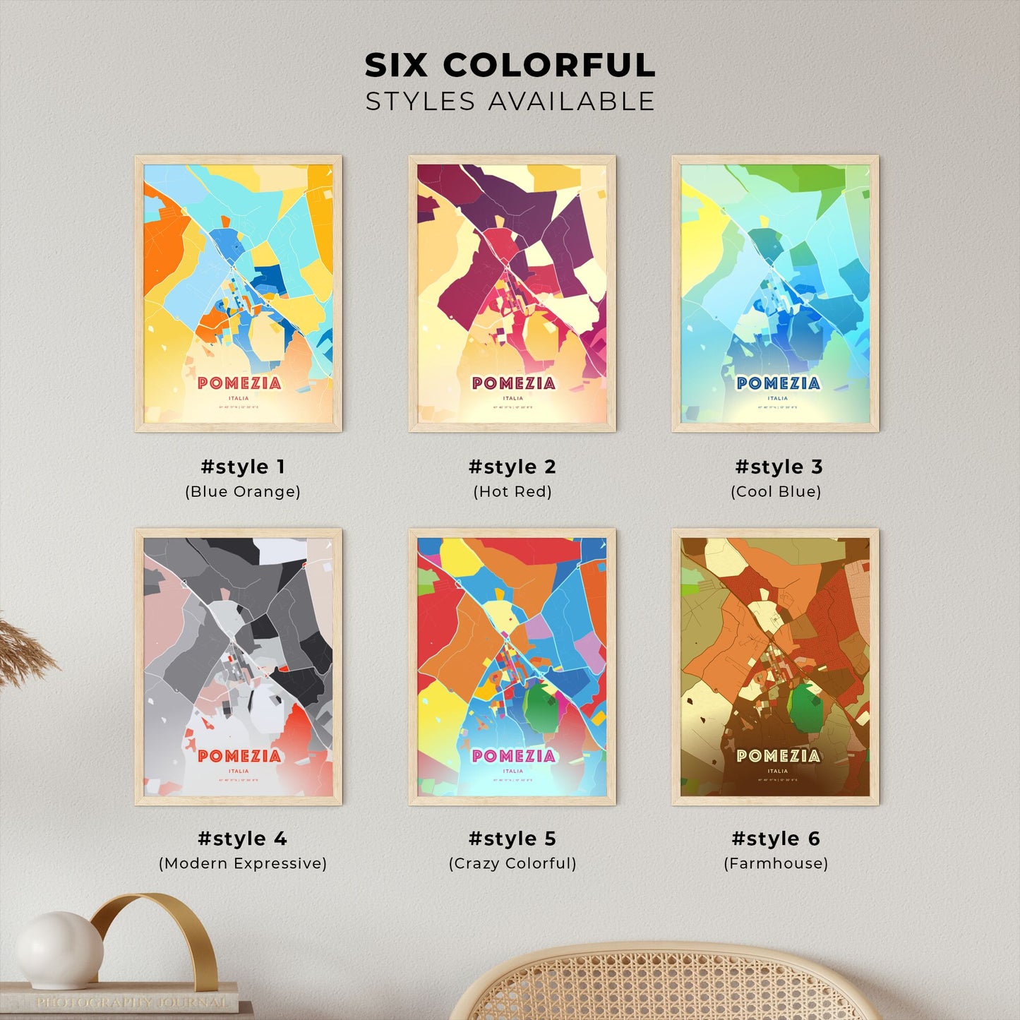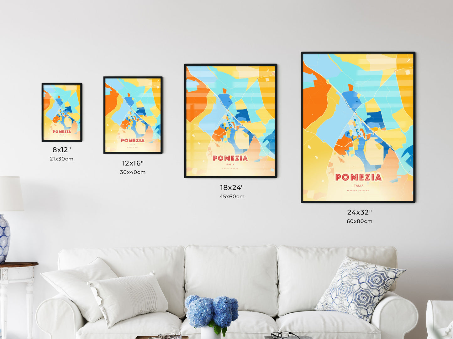 Colorful POMEZIA ITALY Fine Art Map Poster | Customizable