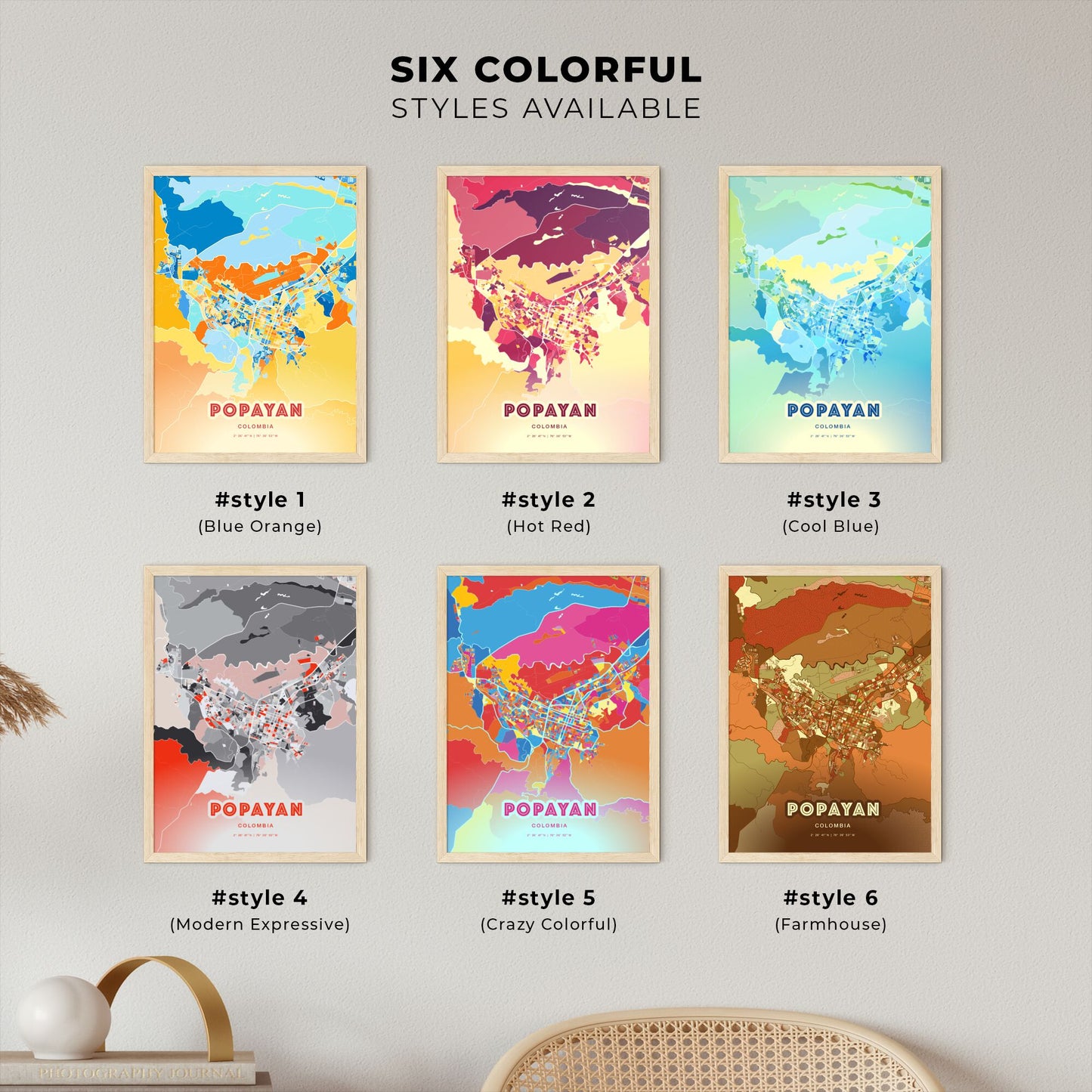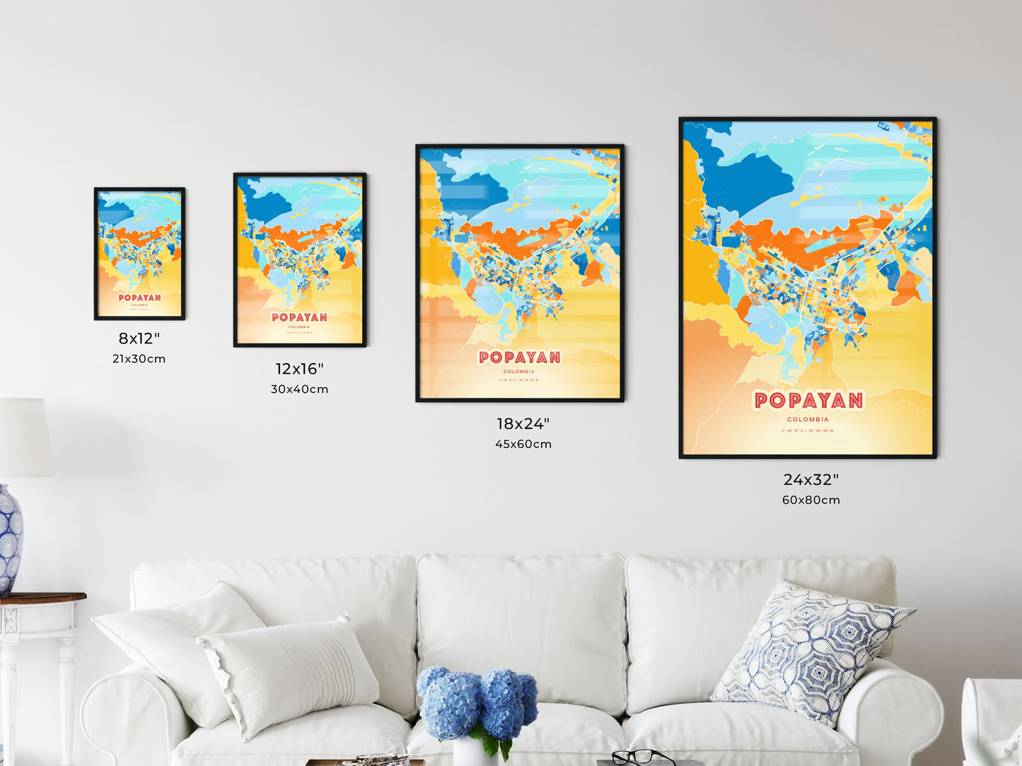 Colorful POPAYAN COLOMBIA Fine Art Map Poster | Customizable