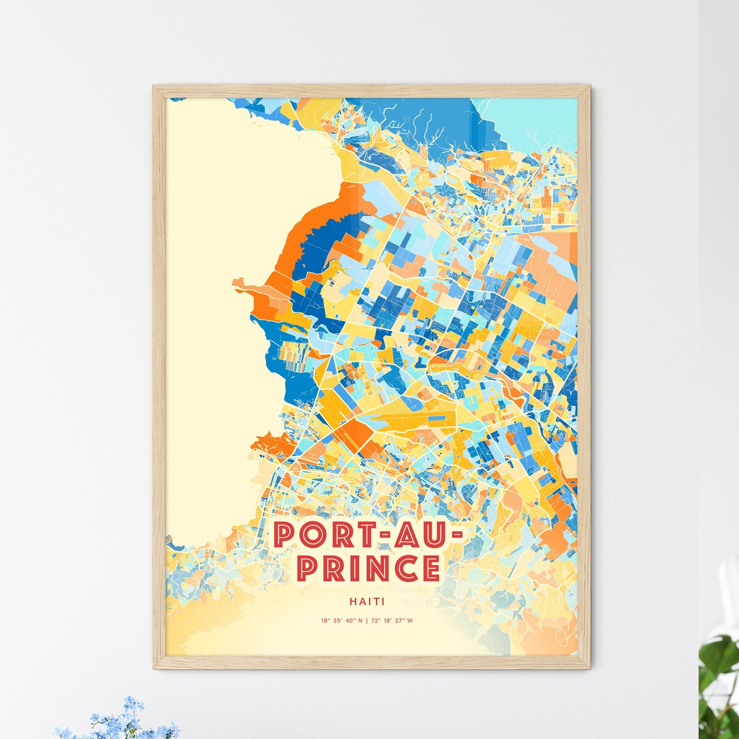 Port-au-Prince city map - with fresh bright orange and blue colors. Our PORT-AU-PRINCE HAITI map has bright streets, railroads and waterways combined with colorful city areas. The city map will be an eye-catcher in any room with its rich detail and colorful freshness.