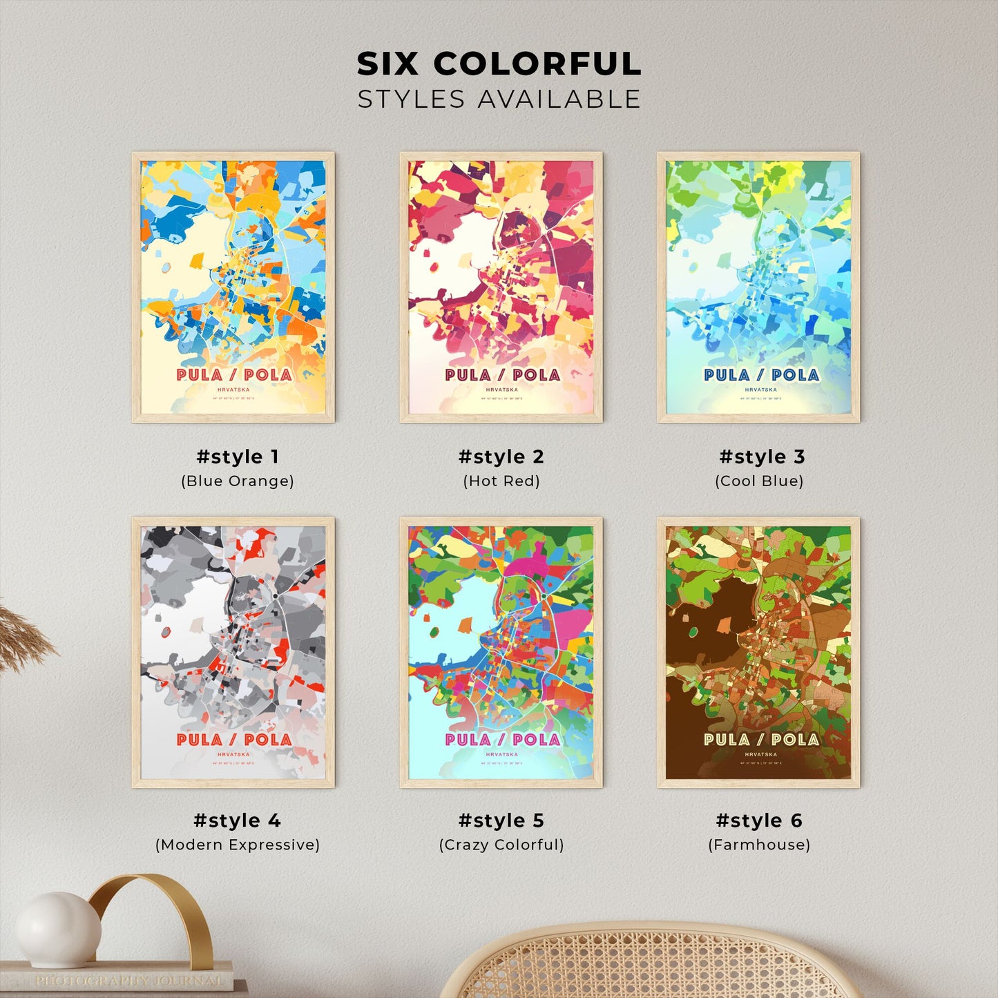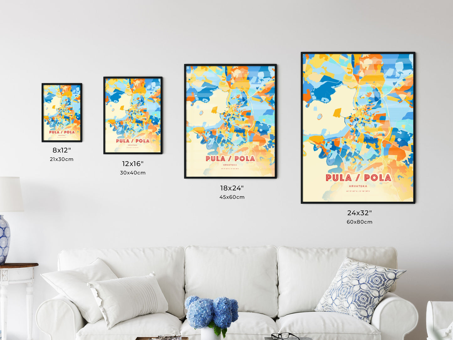 Colorful PULA/POLA CROATIA Fine Art Map Poster | Customizable
