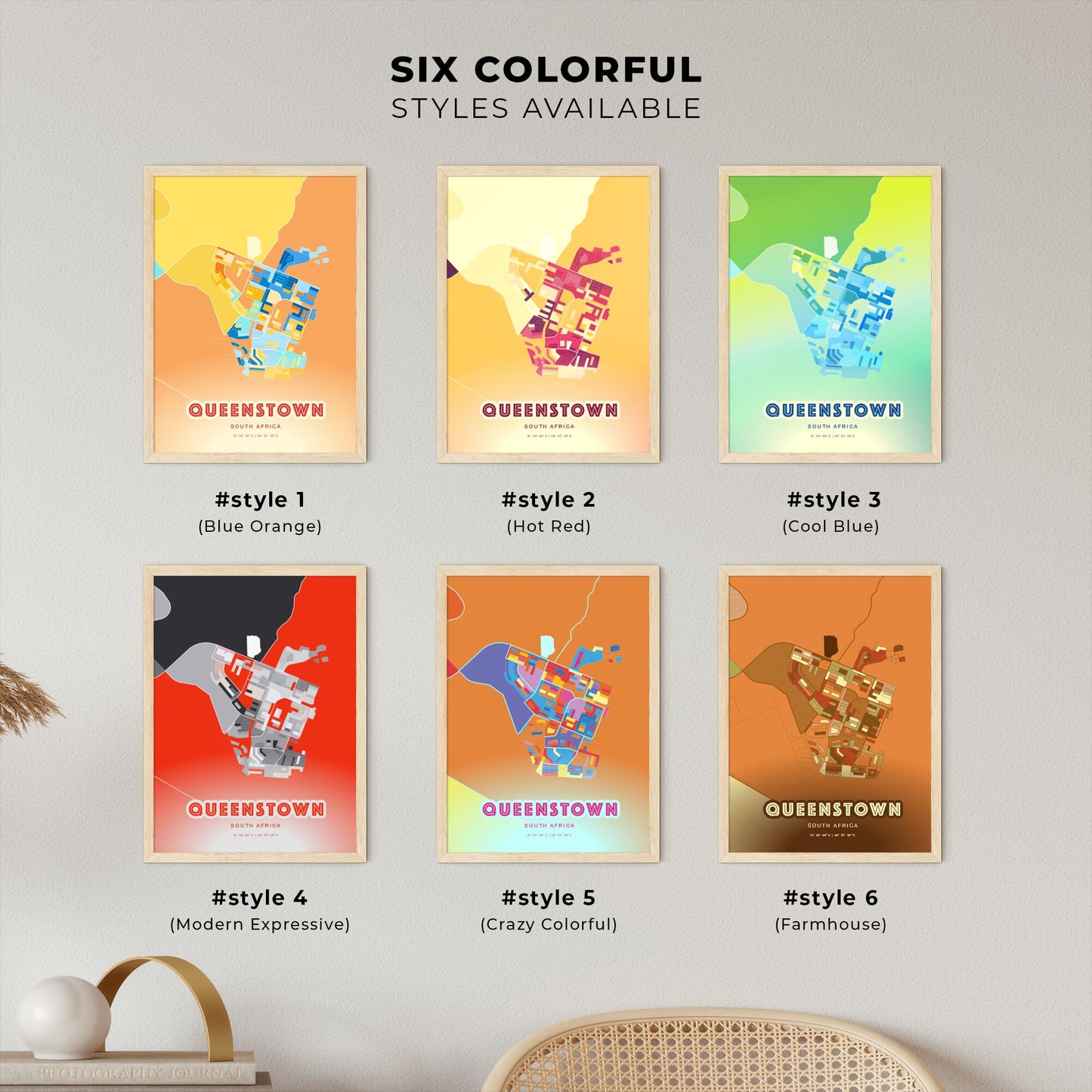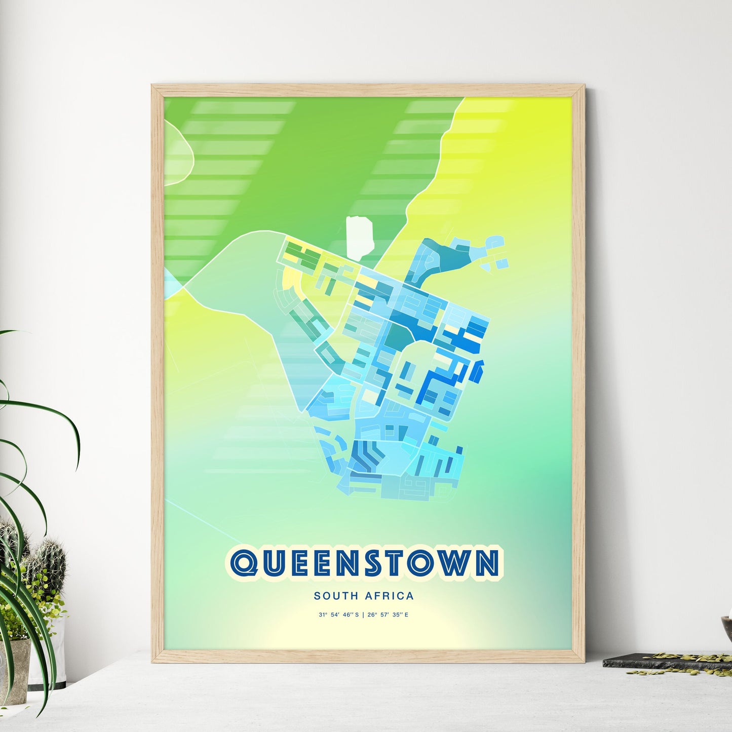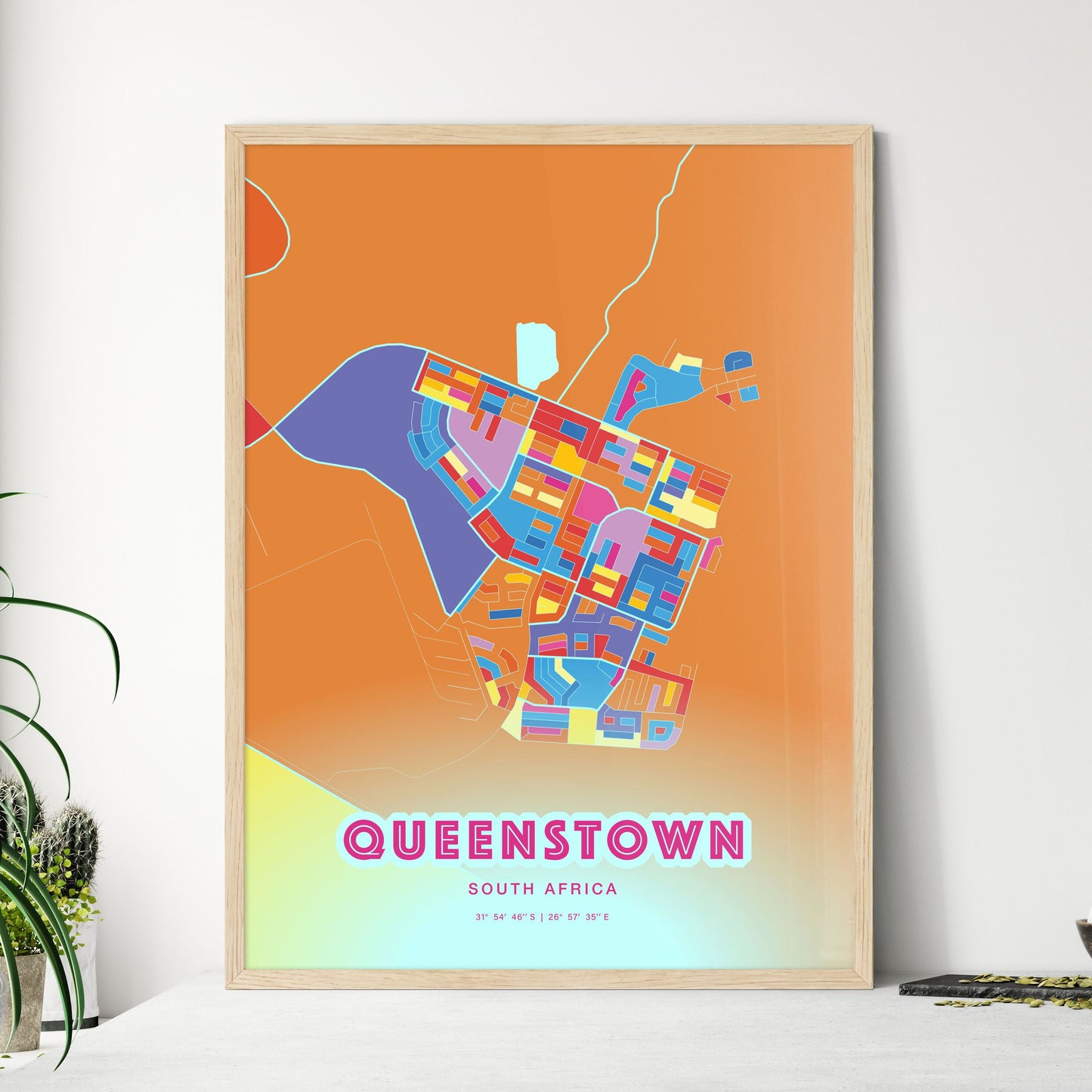 Colorful QUEENSTOWN SOUTH AFRICA Fine Art Map Poster | Customizable