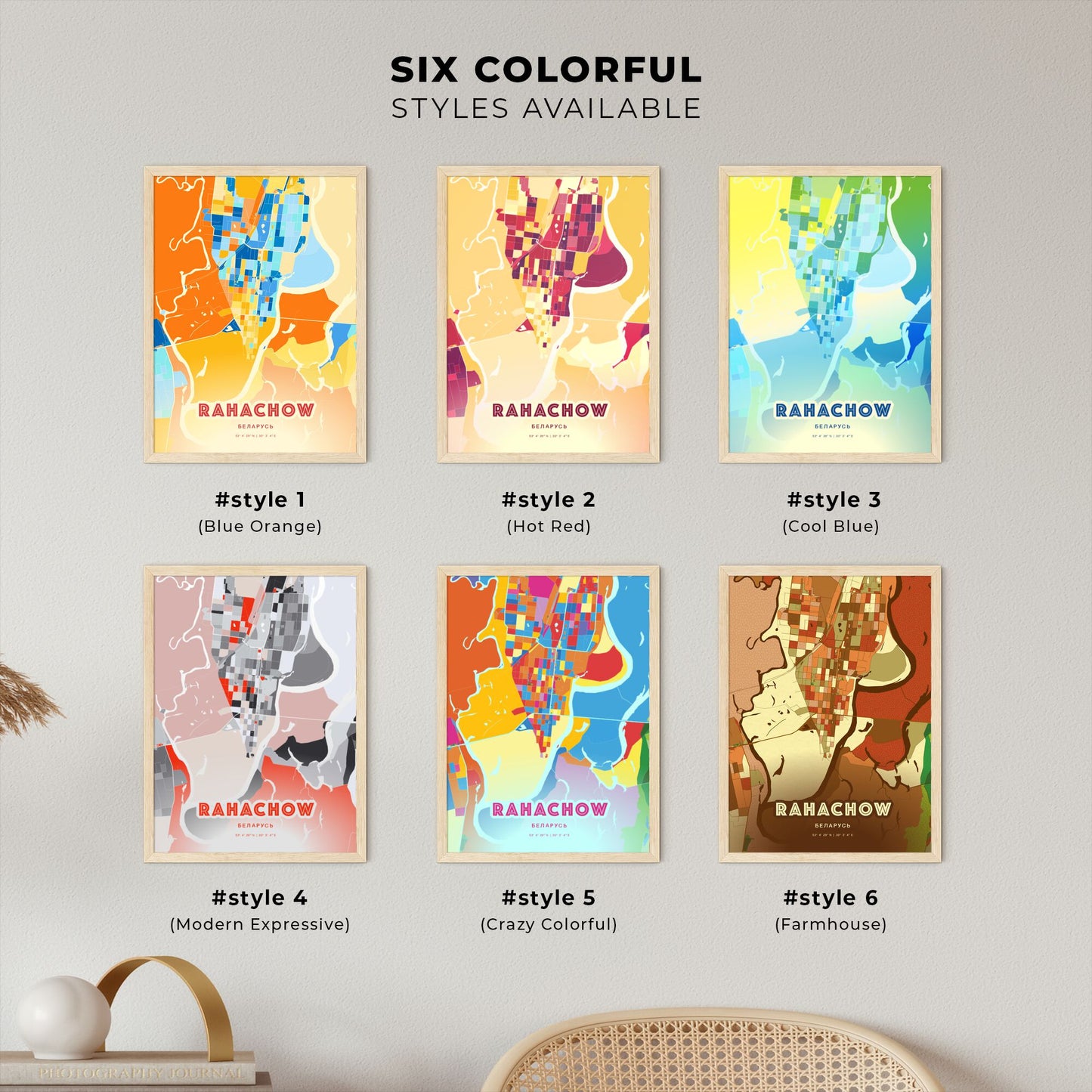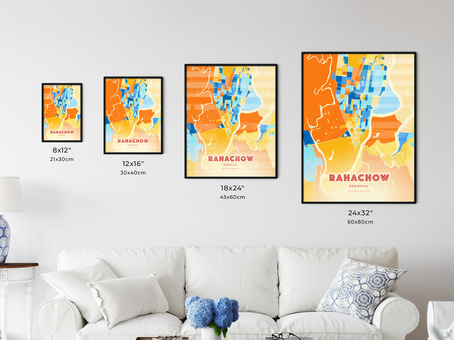 Colorful RAHACHOW BELARUS Fine Art Map Poster | Customizable