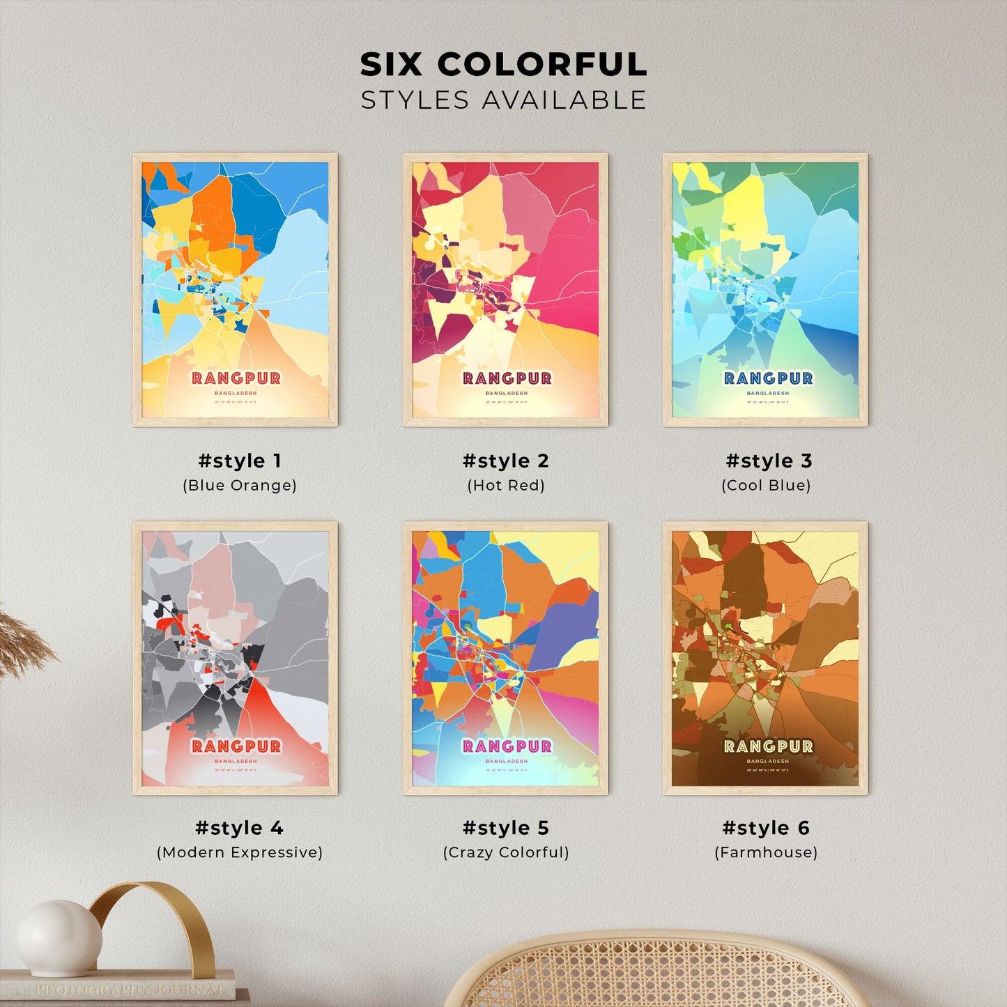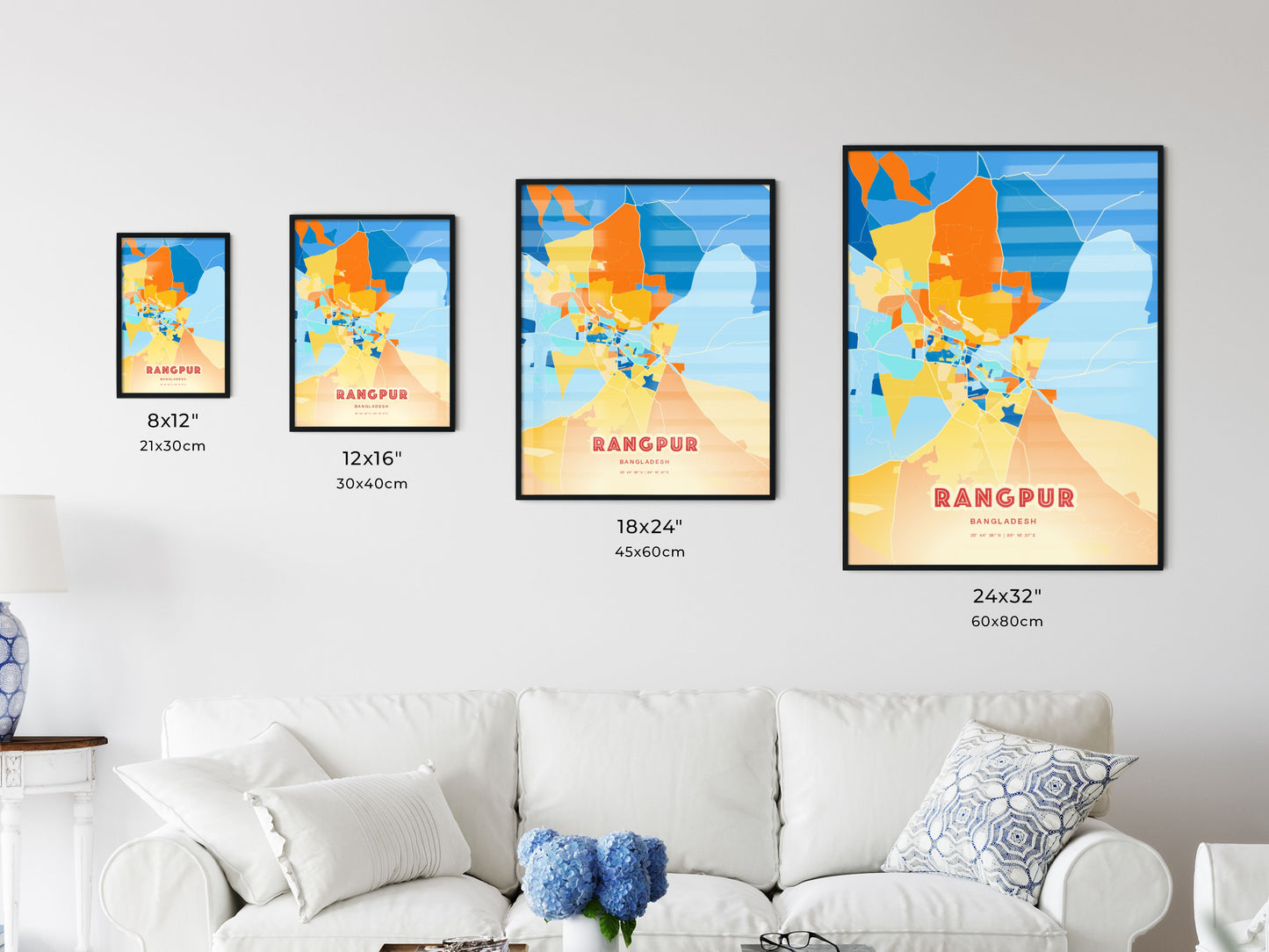 Colorful RANGPUR BANGLADESH Fine Art Map Poster | Customizable