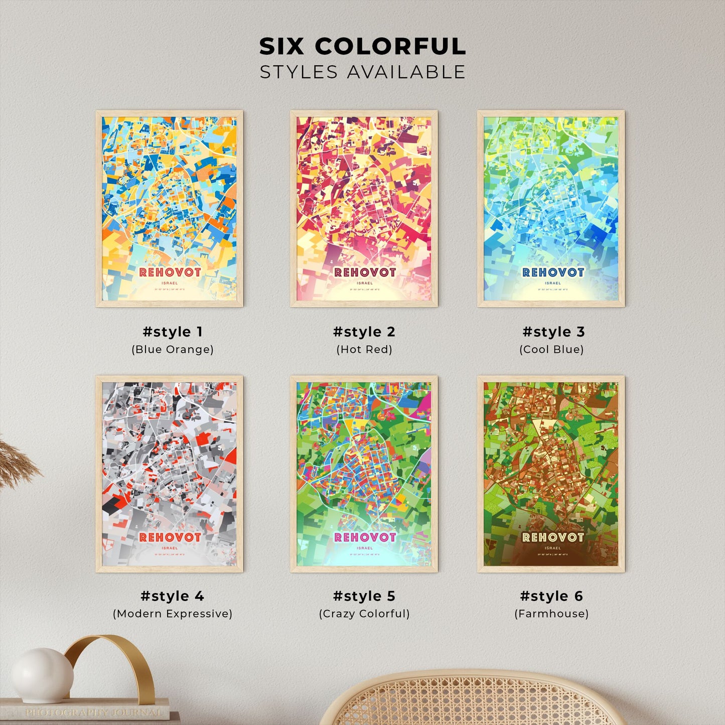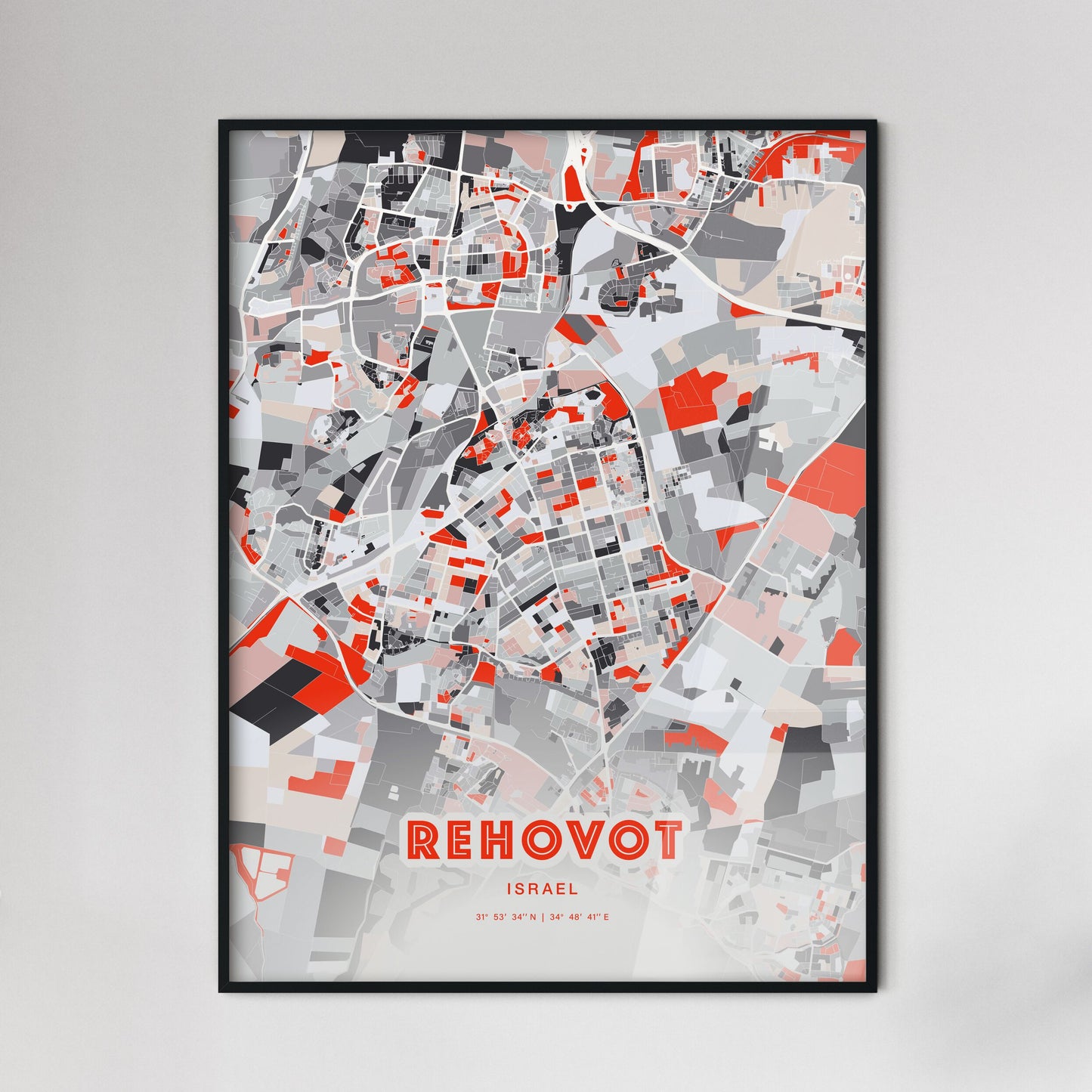 Colorful REHOVOT ISRAEL Fine Art Map Poster | Customizable