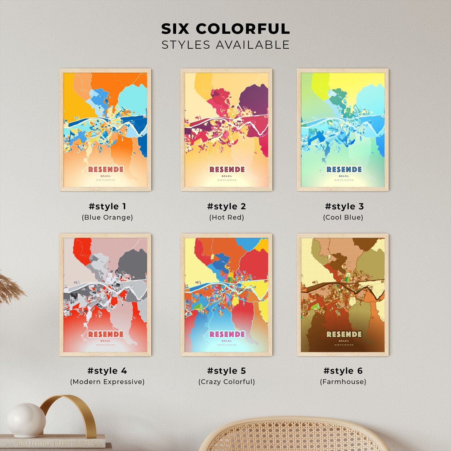 Colorful RESENDE BRAZIL Fine Art Map Poster | Customizable