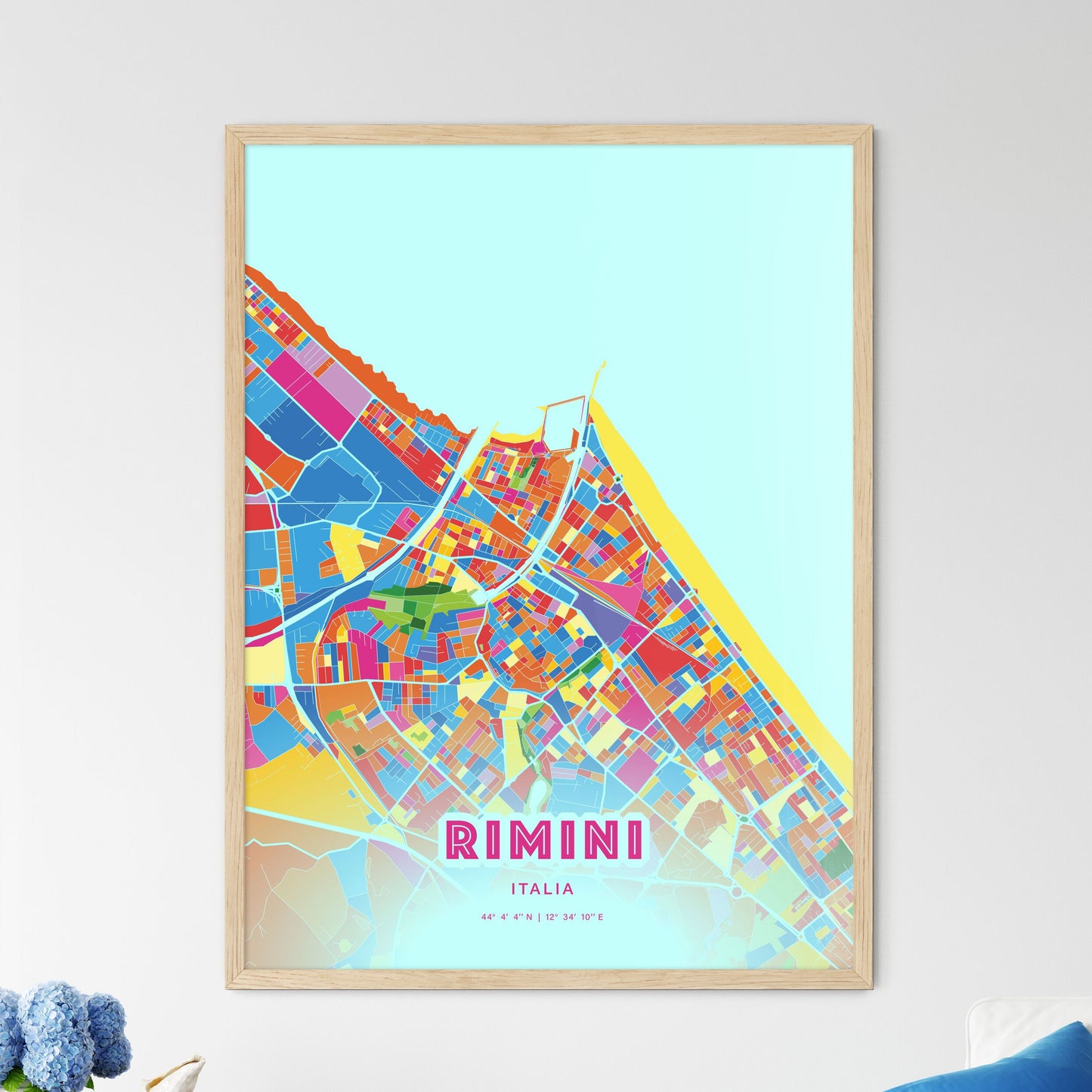 Colorful Rimini Italy Fine Art Map Poster | Customizable