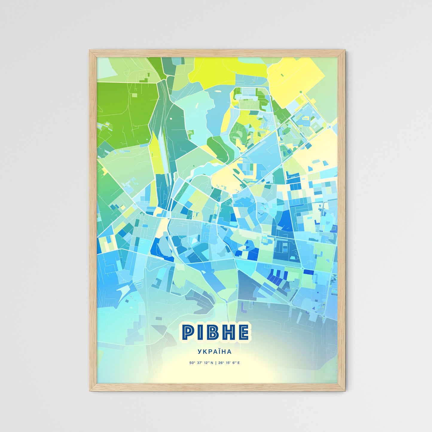 Immerse yourself in the vibrant city of Rivne, Ukraine, through this captivating abstract map print. Rivne, the administrative center of the Rivne Oblast, boasts a rich history as a vibrant cultural and economic hub. Its central location in northwestern Ukraine makes it accessible to destinations like Kyiv, Lviv, and Dubno. The city is adorned with historical landmarks such as the Church of the Resurrection, the Rivne Castle, and the Museum of Amber. Its diverse population has fostered a vibrant tapestry of traditions, arts, and cuisine. Rivne's parks, museums, and theaters offer an abundance of opportunities for entertainment and cultural exploration. Whether you have a personal connection to the city or simply appreciate its captivating essence, this colorful map print is a testament to the beauty and allure of Rivne.