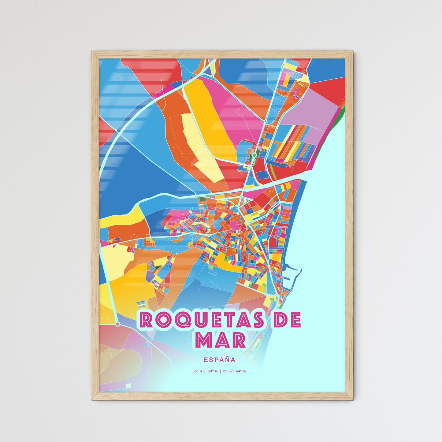 Colorful ROQUETAS DE MAR SPAIN Fine Art Map Poster | Customizable