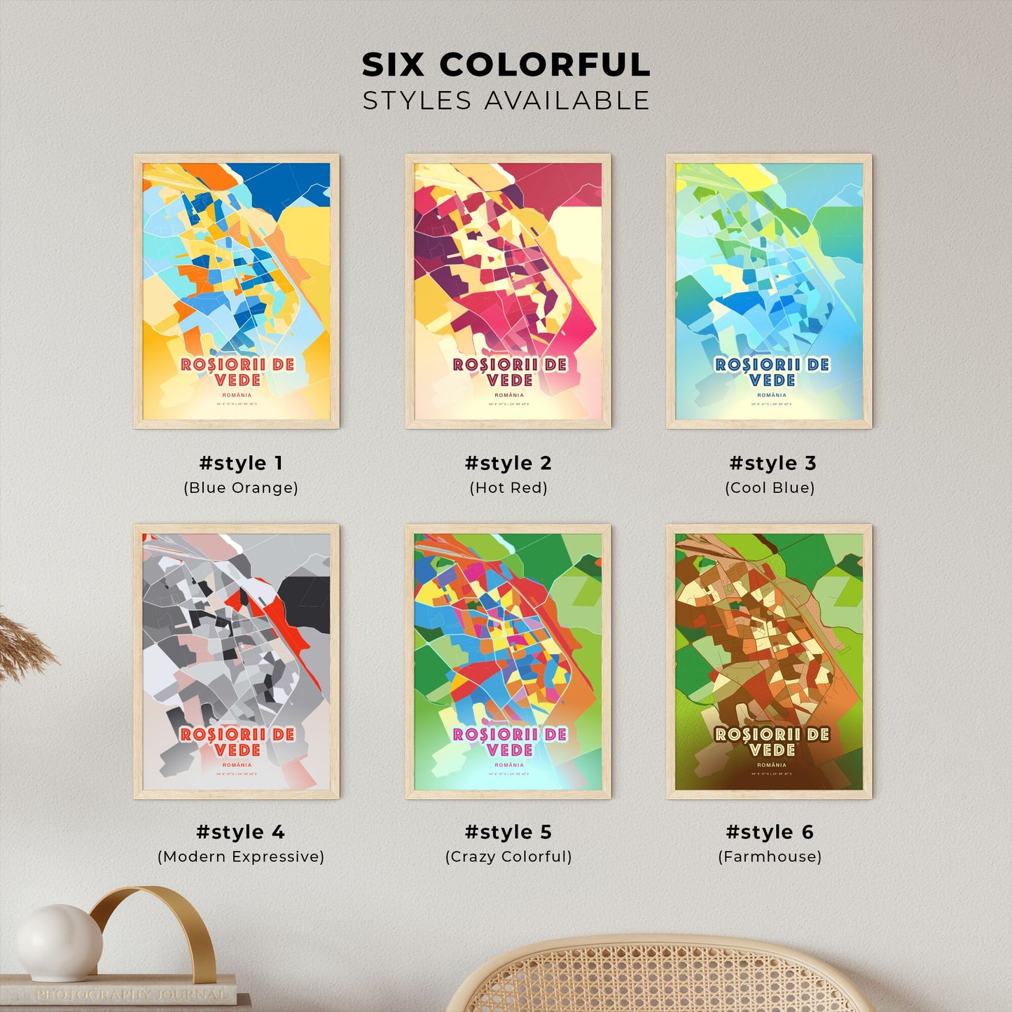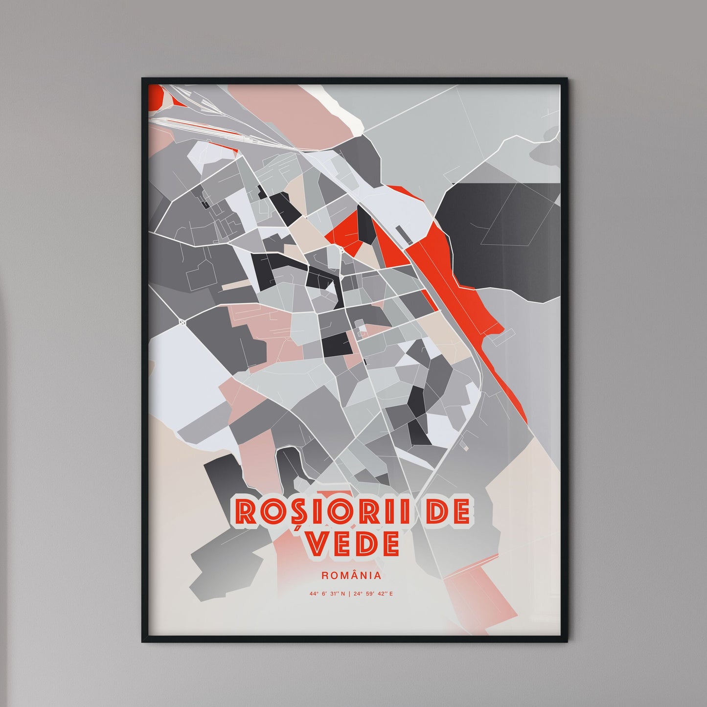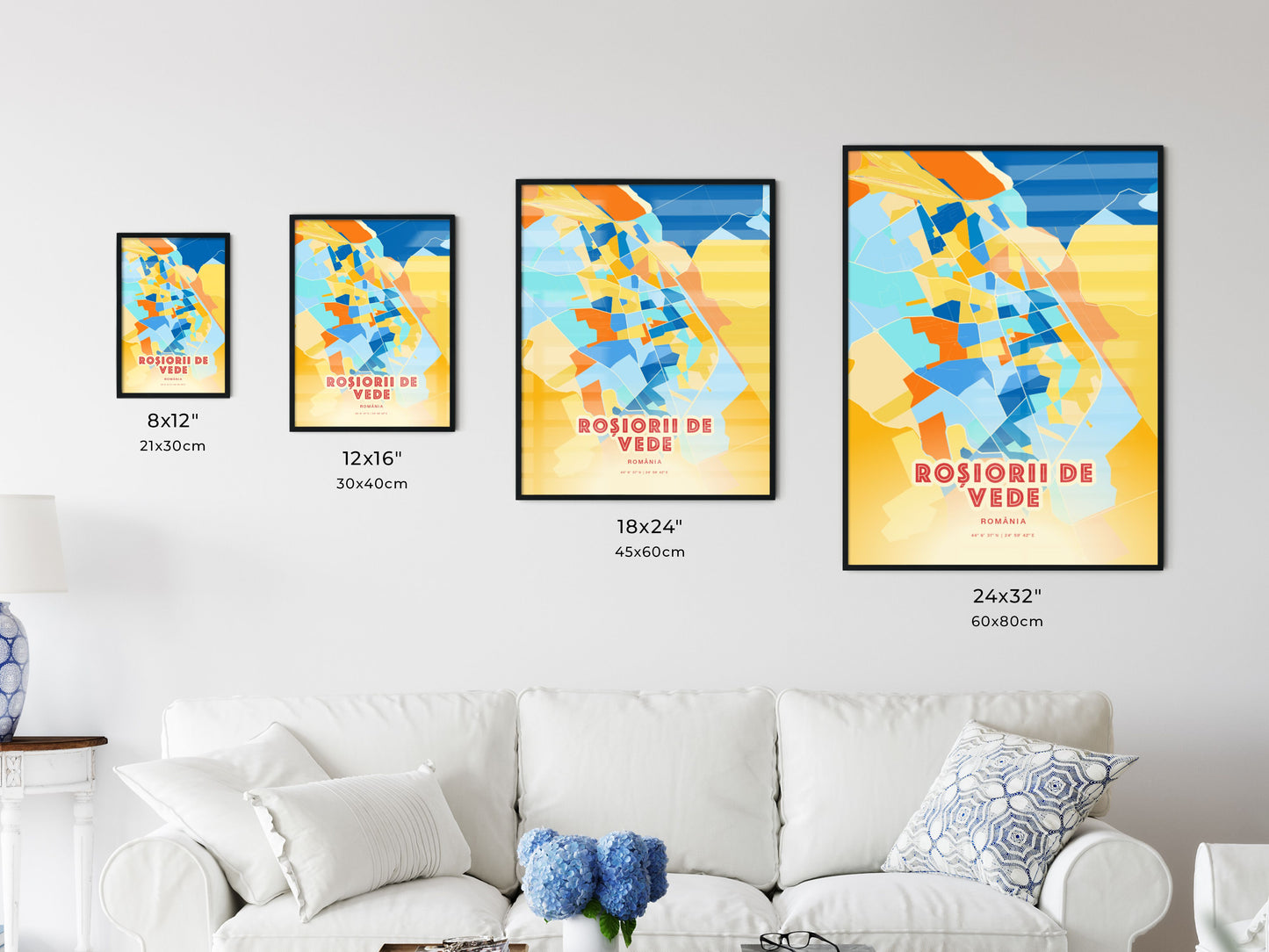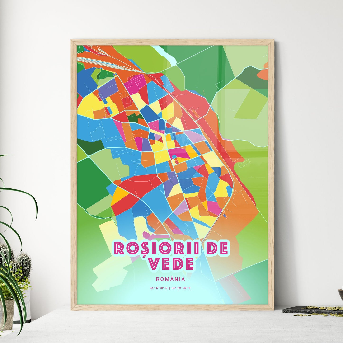 Colorful ROȘIORII DE VEDE ROMANIA Fine Art Map Poster | Customizable