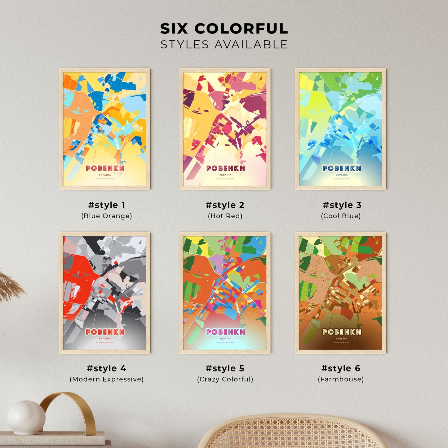 Colorful ROVENKY UKRAINE Fine Art Map Poster | Customizable